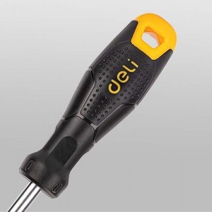Gyakorlatias és tartós laposfejű csavarhúzó fekete színben. A termék nyele kiváló minőségű műanyagból készült. Praktikus lyukkal rendelkezik, amely lehetővé teszi például szerszámtáblán történő felakasztását. A csavarhúzó tökéletesen illeszkedik a kézbe és rendkívül kényelmes a használata.