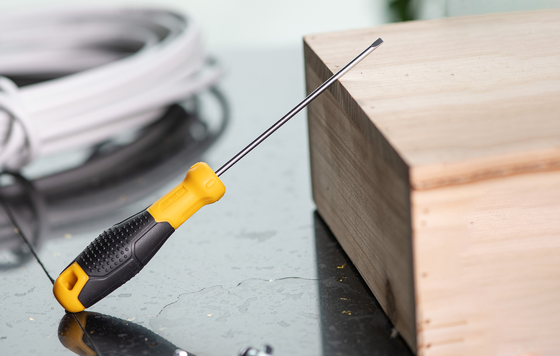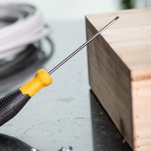 Kényelmesen használható, strapabíró, 3x100 mm -es laposfejű csavarhúzó sárga színben. A termék fogantyúja kiváló minőségű műanyagból készült. Praktikus lyukkal rendelkezik, amely lehetővé teszi a szerszám felakasztását, például egy szerszámtáblára. A csavarhúzó mágneses csúccsal is fel van szerelve, ami nagyban megkönnyíti a munkáját.