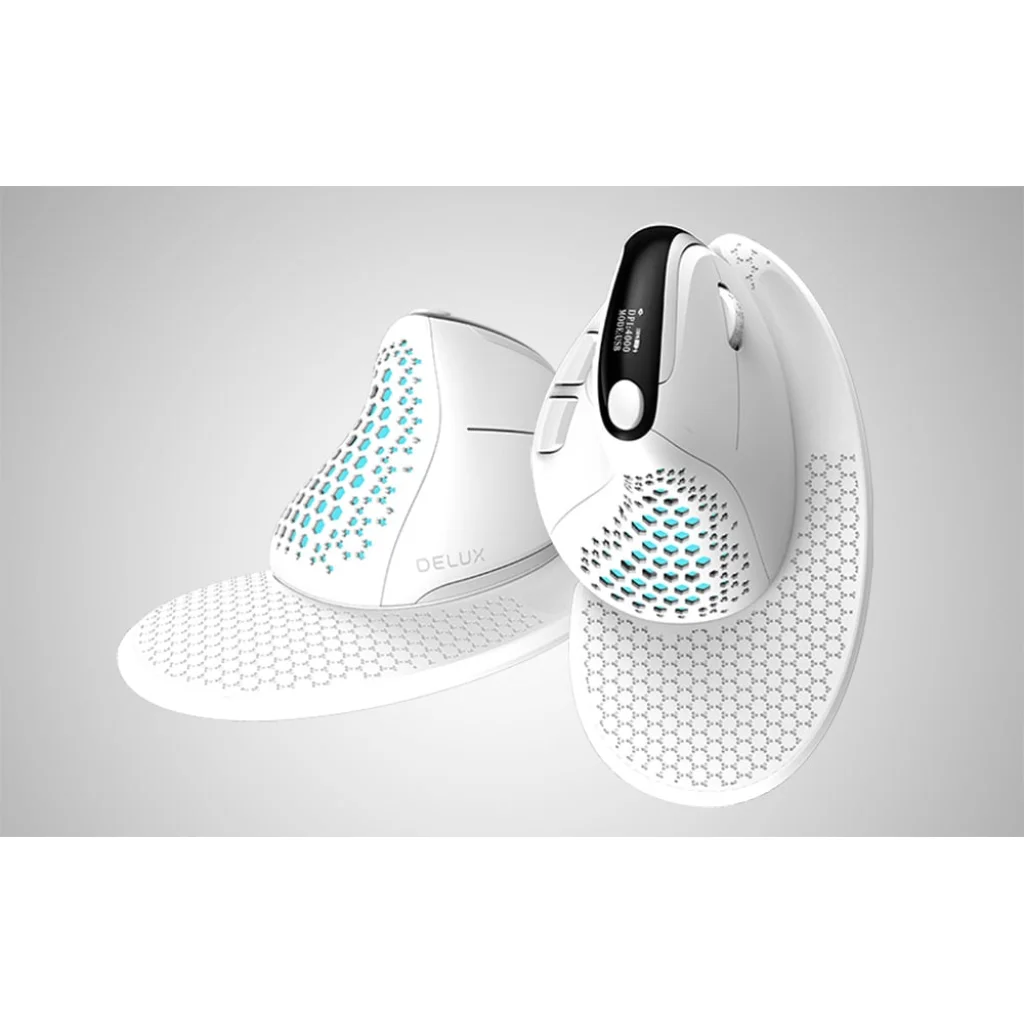 A Delux M618XSD vezeték nélküli függőleges egér még a legigényesebb felhasználók elvárásainak is megfelel. Rendkívül egyszerű és kényelmes használni - OLED kijelzővel van ellátva, amely tovább egyszerűsíti a használatát. Az eszköz lehetővé teszi az 5 pozíciós DPI beállítást akár 4,000-ig, és a 1000 mAh-s akkumulátornak köszönhetően hosszú üzemidőt biztosít. Az egeret háromféleképpen csatlakoztathatja a számítógéphez.