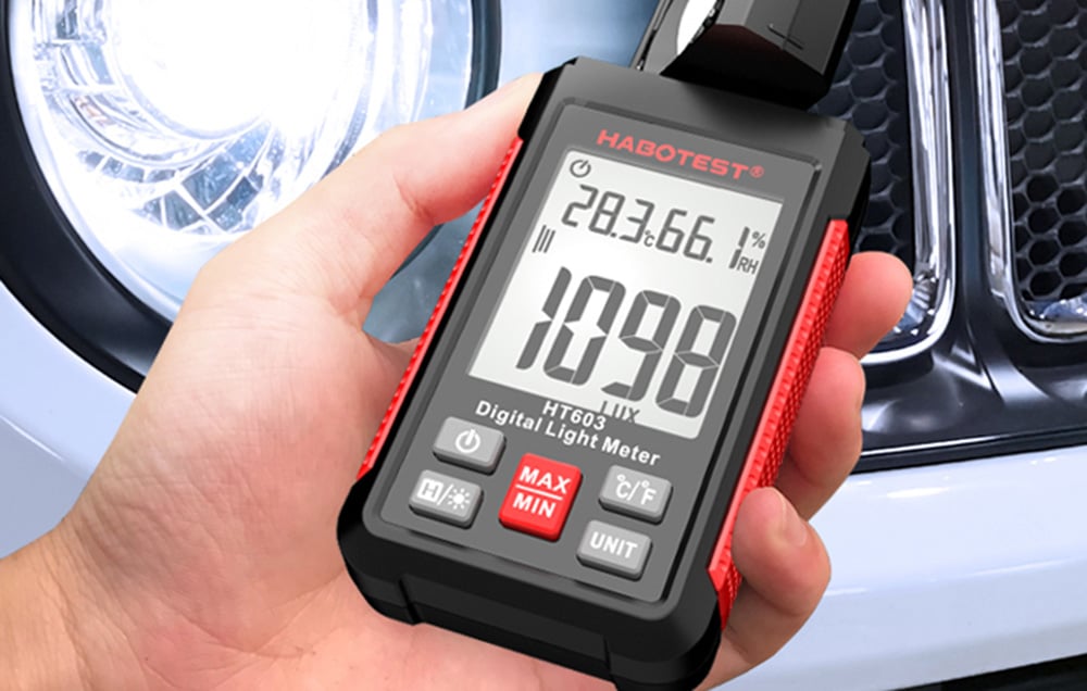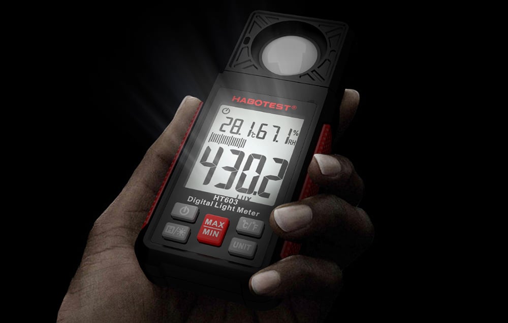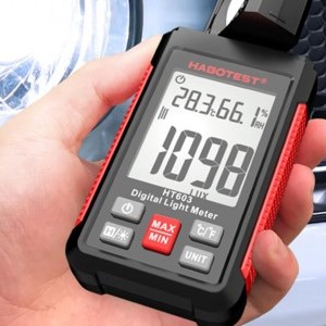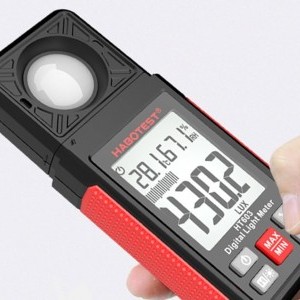 A Habotest HT603 a fényintenzitás mérésére szolgál 0~100000 LUX / 0~10000 FC tartományban. Jól működik például az elektromos iparban vagy helyiség ellenőrzési célokra. Gyors válaszideje és forgatható szondája még kényelmesebbé teszi a használatát. Ezen kívül, a készülékkel mérhetjük a környezeti páratartalmat és hőmérsékletet is. Az HT603-at 3 AAA elemmel lehet működtetni.