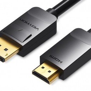 A Vention HADBI DisplayPort - HDMI kábel (3m, fekete) biztosítja a tiszta 1080p HD (1920 x 1080@60Hz) képeket és kiváló audió-videó szinkronizációt. Optimalizált számítógép HDMI monitorhoz vagy projektorhoz való csatlakoztatásához, lehetővé teszi a többképernyős kiterjesztést, valamint a MÁSOLÁS és KITERJESZTÉS módokat. Finomított kialakítása minden körülmény között biztonságos és stabil kapcsolódást biztosít.