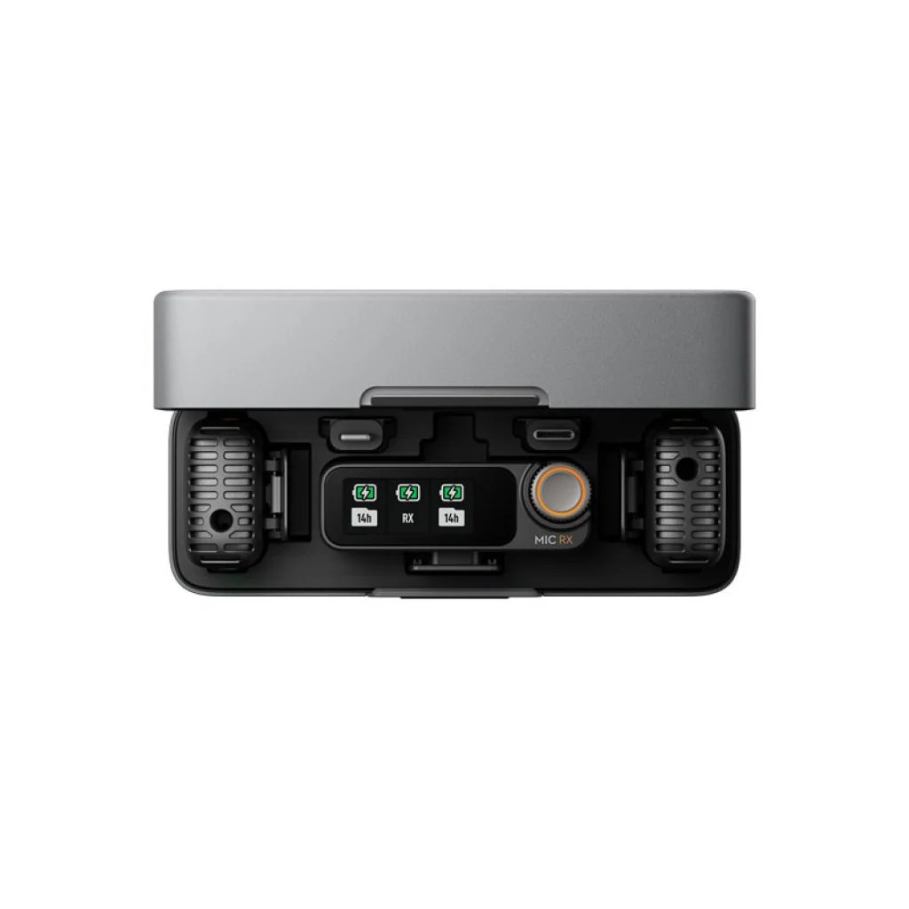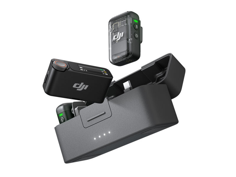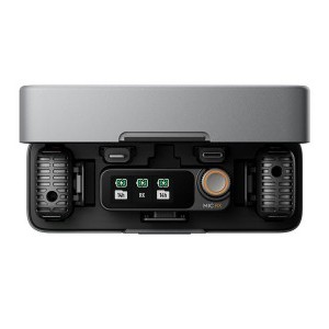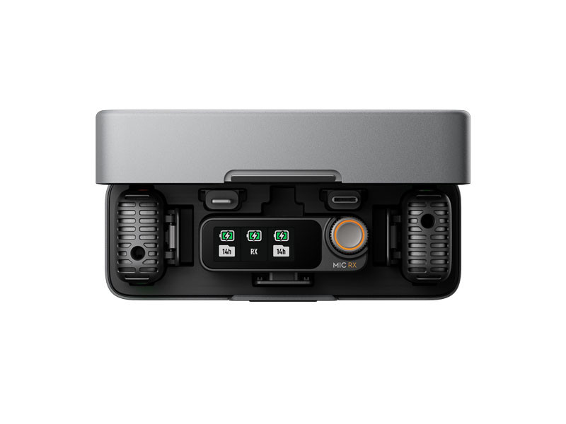 Amint Ön kinyitja a töltőtokot, a DJI Mic 2 automatikusan bekapcsol. Az intelligens tok töltés közben automatikusan párosítja a vevőegységet és az adóegységeket, így a töltőtok kinyitása után azonnal indulhat a felvétel. Emellett USB-C és Lightning adaptereket is tartalmaz, így a használni kívánt rögzítőeszközökkel nagyon egyszerűen összekapcsolható.