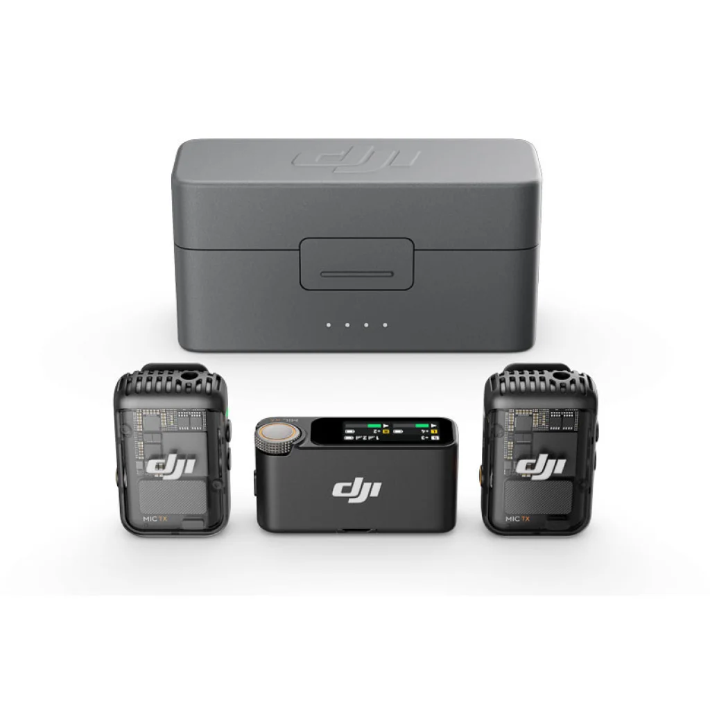 - A DJI Mic 2 szett (2 adóegység + 1 vevőegység + töltőtok) és a DJI Mic 2 szett (2 adóegység + 1 vevőegység) egyaránt Shadow Black színű adóegység(ek)et tartalmaz. A DJI Mic 2 adóegység (Pearl White színben) külön megvásárolható.