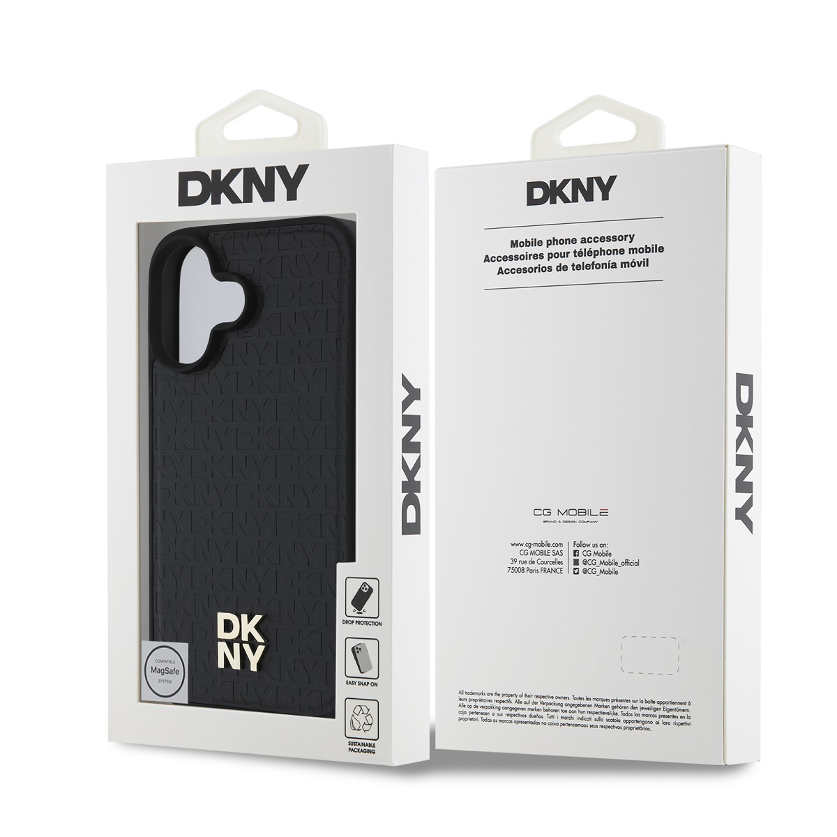 A DKNY PU bőr ismétlődő minta Stack Logo MagSafe hátlap tökéletes kiegészítője a telefonodnak és öltözékednek, egyesítve a funkcionalitást és a stílust.