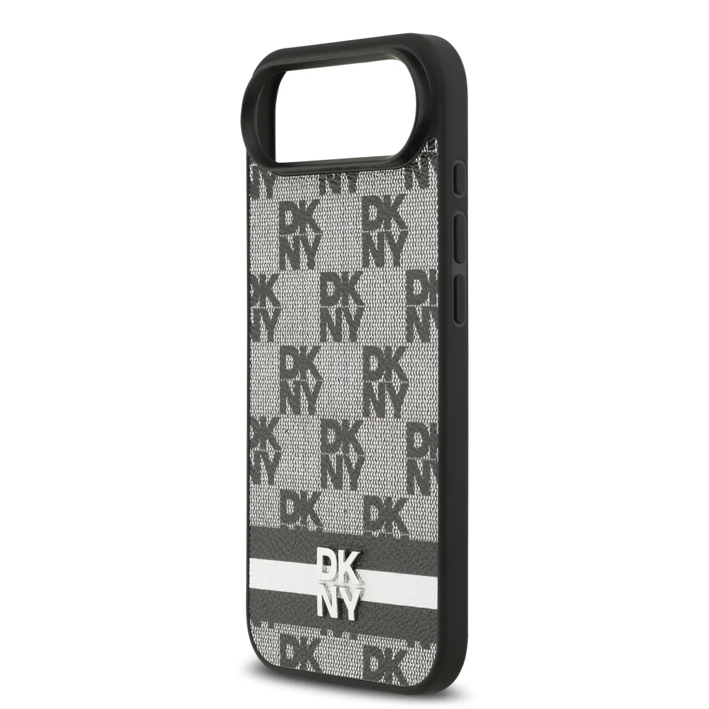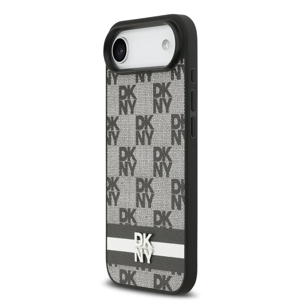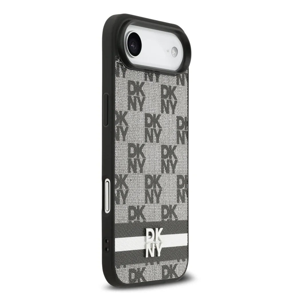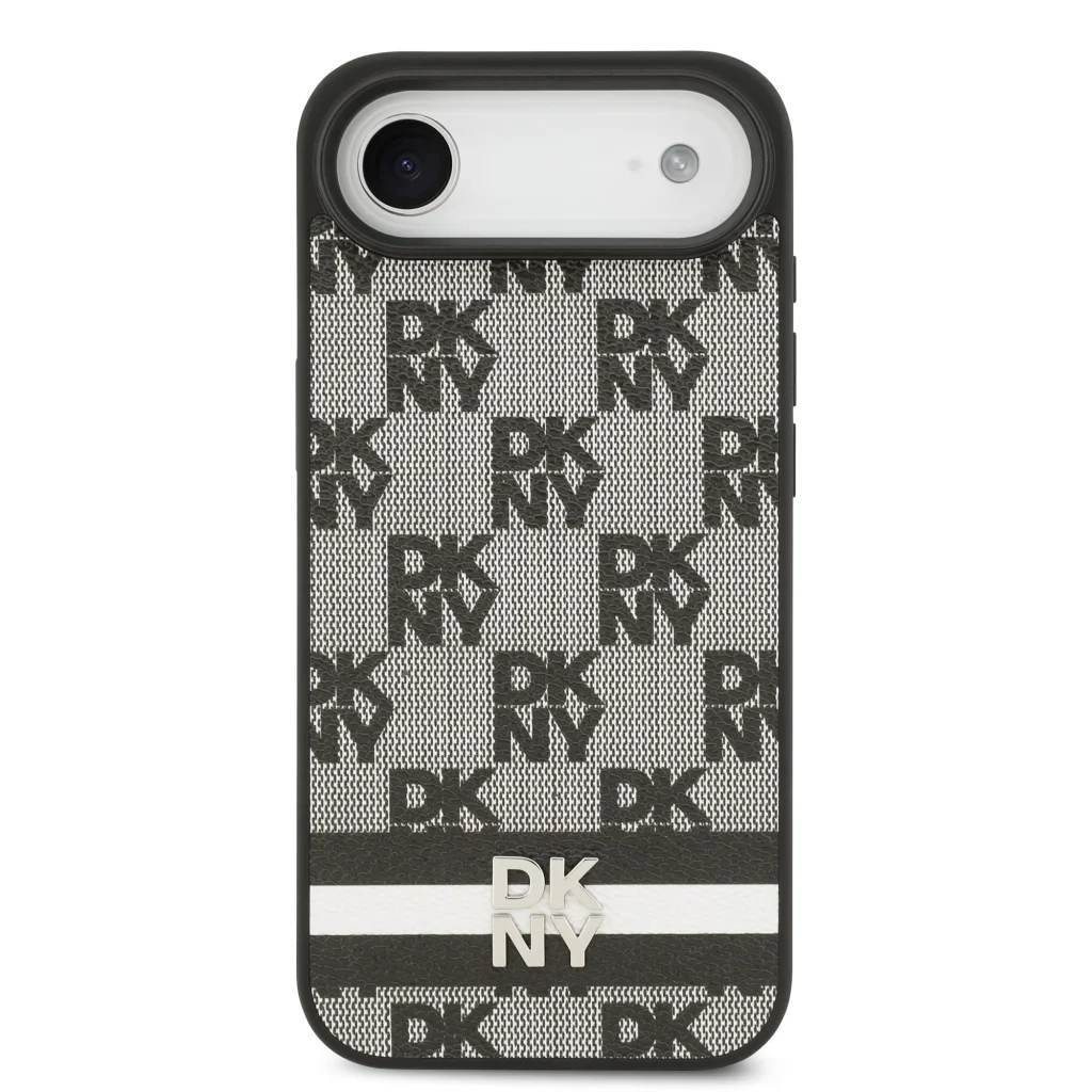 A DKNY PU bőr, kockás mintázatú és csíkos prémium hátlaptok elegáns és jellegzetes mintázattal rendelkezik, egy DKNY fém logóval kiegészítve.