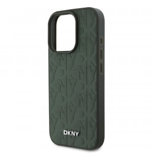 A DKNY PU Bőr Rácsmintás Magsafe tok ismétlődő "DKNY" logóból áll, amely elegáns grafikai hatást kelt.