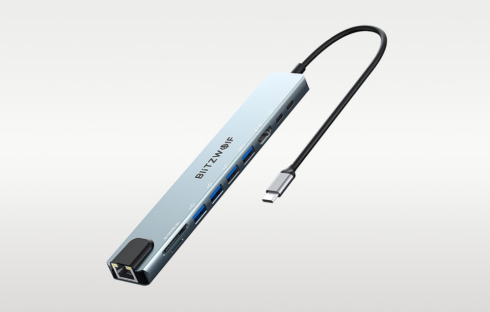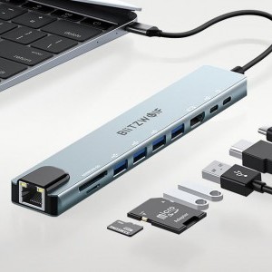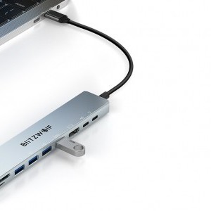 A Blitzwolf BW-TH5 dokkoló állomás számos porttal van felszerelve, hogy egyszerre több eszközt lehessen csatlakoztatni. Egy USB 3.0 és három USB 2.0 porttal rendelkezik a gyors és hatékony adatátvitel érdekében. A HDMI port akár 4K@30Hz (3840x2160) videóminőséget is támogat, így ideális prezentációkhoz és magas minőségű grafikával végzett munkákhoz.