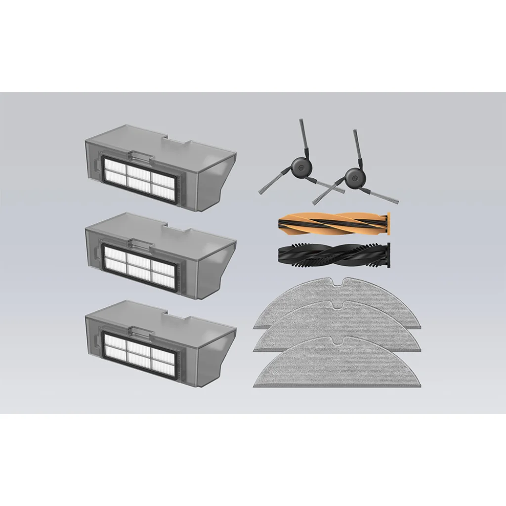 A Dreame D20 Pro tartozékkészlet egy praktikus felszereléskészlet a készülékhez, amely biztosítja, hogy hosszabb ideig a lehető legjobb teljesítményt nyújtsa. A készlet tartalmaz egy TroboWave™ DuoBrush kefét az összegubancolódás megelőzésére, 2 oldalsó kefét a szélek közelében lévő por felszedésére, 3 porgyűjtő szűrőt a finom törmelék felfogására, valamint 3 felmosóbetétet a padló hatékony felfrissítésére felmosás közben. Ideális választás a készülék teljes hatékonyságának megőrzéséhez és a maximális higiénia otthoni biztosításához.