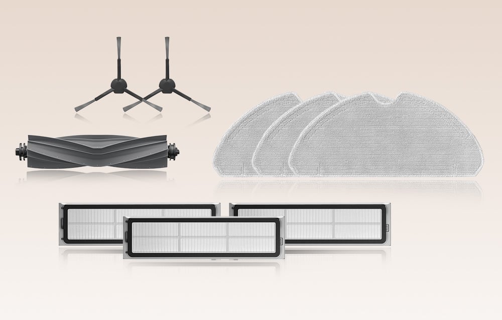 A Dreame D9 Max gen2 robotporszívó tartozékkészlete ideális azok számára, akik fontosnak tartják a készülékük tökéletes tisztaságát és megbízhatóságát. A felmosó párnák lehetővé teszik a padlók hatékony és egyenletes tisztítását, míg a szűrő tiszta levegőt biztosít az otthonodban, megszüntetve az allergéneket és a legkisebb porszemcséket. Az oldalkefe tökéletesen eléri a nehezen elérhető helyeket, például a sarkokat és az éleket, így biztosítva a por és szennyeződés alapos begyűjtését. Eközben a fő kefe különböző típusú padlóról, beleértve a szőnyegeket és a laminált padlót is, eltávolítja a szennyeződéseket.