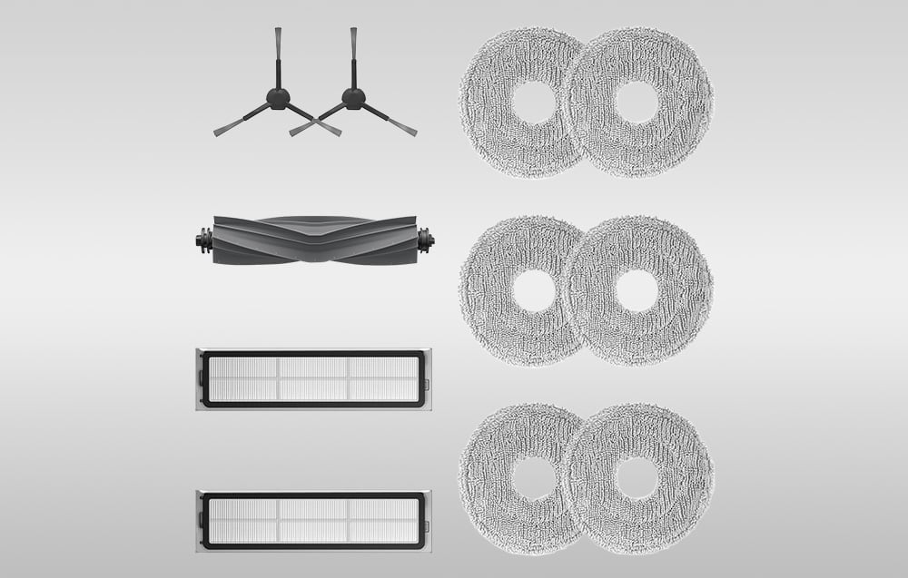Tartozékkészlet a Dreame L10s Pro Gen 2 robotporszívóhoz. A Dreame L10s Pro Gen 2 robotporszívóhoz való tartozékkészlet elengedhetetlen választás mindazok számára, akik meg szeretnék tartani eszközük kiváló állapotát és biztosítani szeretnék a foltmentesen tiszta otthont. A mop párnák mélytisztítást biztosítanak még a legmakacsabb foltok számára is, különböző felületekről, míg az oldalkefék precízen távolítják el a port és törmeléket a sarkokból és élekből. A fő kefe hatékonyan szedi fel a szennyeződéseket kemény padlókról. A csomag tartalmaz továbbá porzsákokat és szűrőket is.