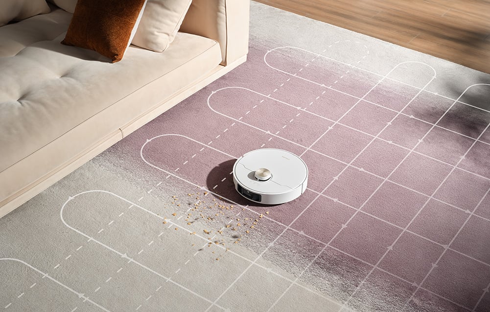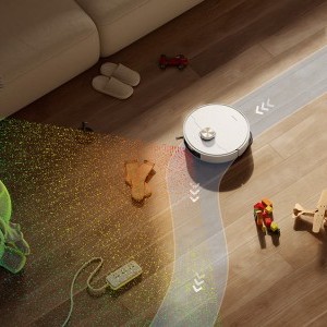 A Dreame L40s Pro Ultra intelligenciája a Pathfinder™ rendszeren alapul, amely precíz térképeket készít akár négy emeletről is. Beépített 3D strukturált fénye és AI algoritmusai több mint 180 féle tárgyat képesek felismerni, és ehhez igazítani az útvonalat. Legyen szó a padlón felejtett kávészemekről, játékokról, kábelekről vagy akár háziállatokról, a robot intelligensen elkerüli azokat (lásd a mellékelt képeket, ahol a robot okosan manőverez a tárgyak és a háziállatok körül). A beépített LED-világításnak köszönhetően sötétben is hatékonyan működik, megőrizve a pontosságot és a manőverezés hatékonyságát, így éjszaka vagy gyengén megvilágított helyiségekben is tökéletes tisztaságot biztosít (ahogy azt az egyik kép is szemlélteti).