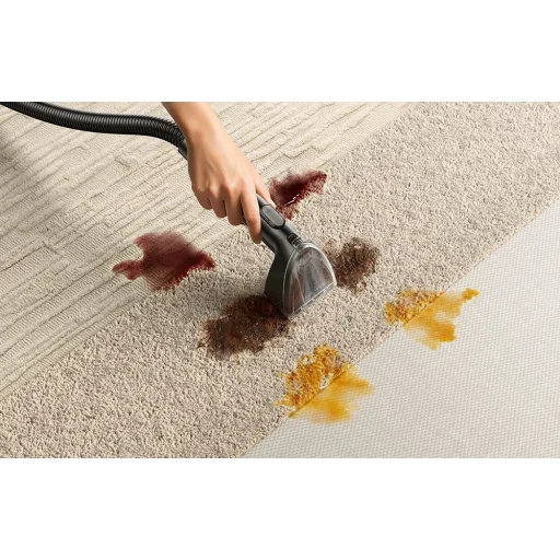 Az alkalmazott motor 17 000 Pa szívóteljesítményével könnyedén eltávolítja a mélyen beágyazódott szennyeződéseket és port a szövetekről, szőnyegekről vagy a bútorok kárpitjáról. A nyomás alatt álló gőzsugár felbontja a szennyeződést, az erőteljes szívóerő pedig azonnal elszállítja azt, megakadályozva, hogy újra behatoljon a szövetbe. Az eredmény tökéletesen tiszta, felfrissült és szinte száraz felületek csíkok és foltok nélkül.