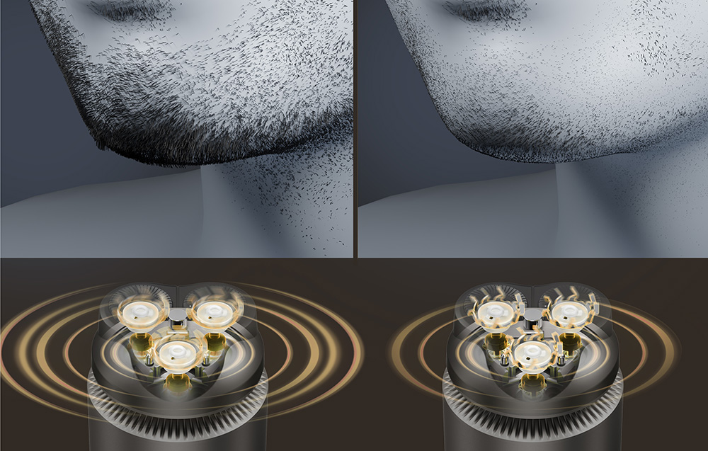 Önélező pengék A készülék 33°-os szögben beállított, optimalizált pengéket kínál, amelyek maguktól élesednek. Ez a rendszer nem csak a vágóelemek élettartamát hosszabbítja meg, hanem sima mozgást és nagy pontosságot is biztosít húzásérzet nélkül, ami hozzájárul minden borotválkozás kényelméhez.