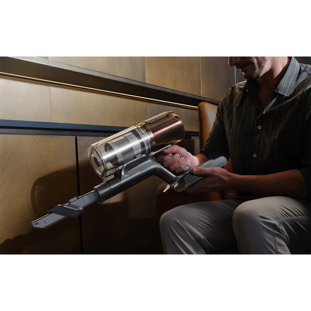 A Dreame V30 Essential egy vezeték nélküli porszívó, amely az erőteljes motor, a fejlett szennyeződésérzékelő rendszer és az ergonomikus kialakítás kombinálásával bármilyen felület alapos tisztítását biztosítja - a kemény padlótól a különböző sörtehosszúságú szőnyegeken át a bútorok alatti nehezen hozzáférhető területekig. Akár 30 000 Pa szívóteljesítményt is elér, és akár 99,99%-os hatékonysággal szűri a levegőt, hogy segítsen tisztán tartani a dolgokat.