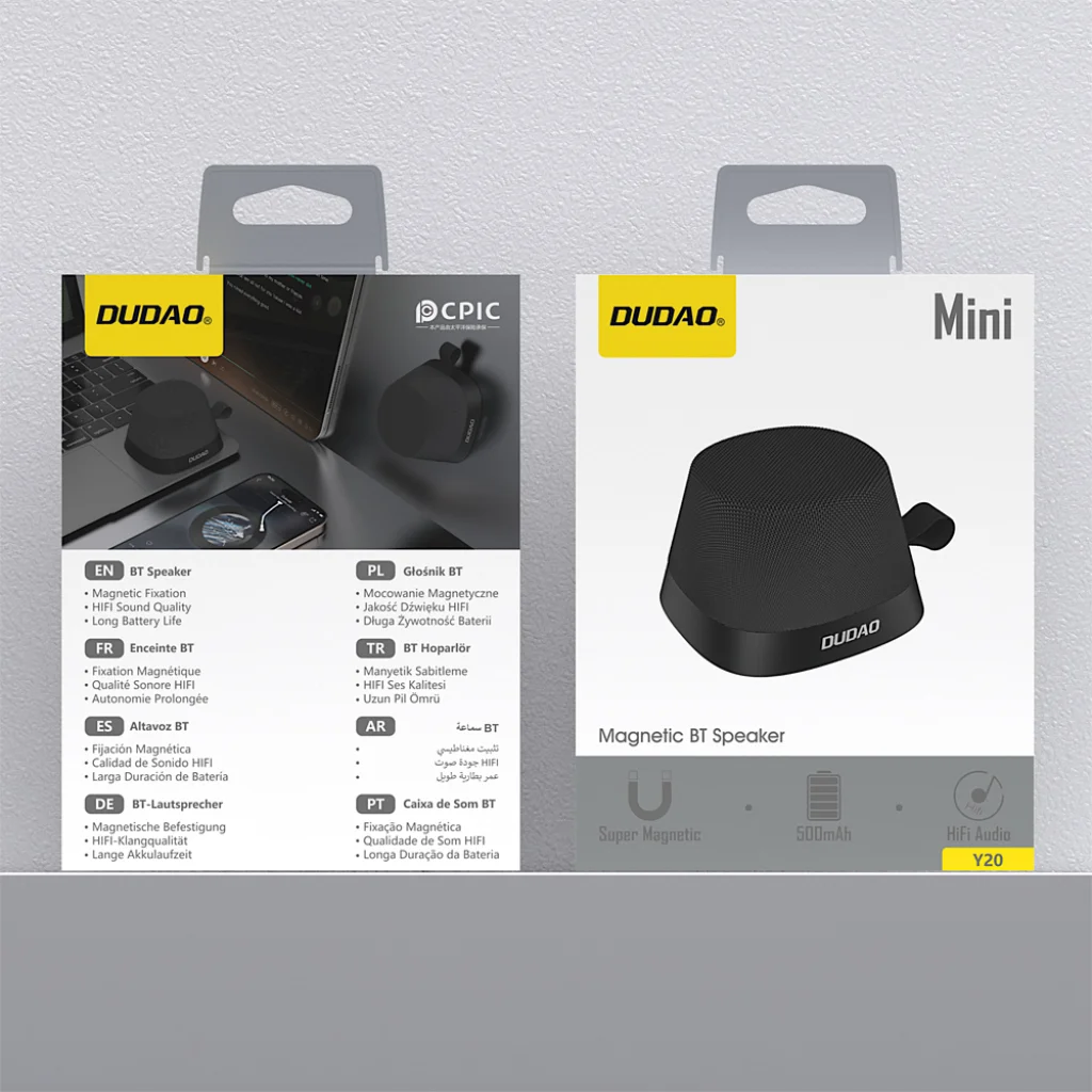 Fedezze fel a Dudao Y20 vezeték nélküli hangszórót, egy forradalmi eszközt, amely nem csak kiváló minőségű hangzást biztosít, de egyben rendkívül praktikus mágneses telefontartóként is funkcionál. Kompakt méretével, elegáns fekete designjával és a legújabb Bluetooth 5.3 technológiával a Dudao Y20 ideális társ a mindennapokban, legyen szó munkáról, szórakozásról vagy utazásról.
