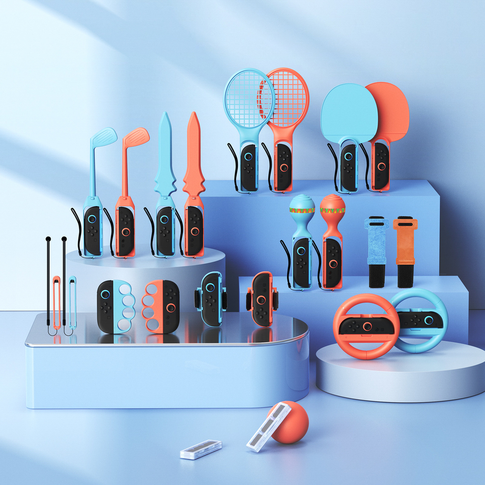 Sportélmények valósághű formában: A teniszütők, golfütők és kormányok még autentikusabbá és lebilincselőbbé teszik a játékmenetet – mintha valódi teniszpályán vagy versenypályán lennél. Biztonságos szórakozás: Tartós csukló- és lábpántok csúszásmentes kivitelben biztosítják a stabilitást és a mozgás szabadságát még intenzív játékmenet közben is. Ergonomikus Joy-Con markolatok: Kényelmes markolatok beépített játékkártya hellyel, amelyek kényelmes játékot és könnyű hozzáférést biztosítanak kedvenc játékaidhoz. Szervező 12 játékkártyához: A dupla rétegű, átlátszó doboz lehetővé teszi akár 12 játék rendezését és tárolását, így könnyen megtalálhatóak lesznek. Kényelmes szállítás: A mellékelt táska lehetővé teszi az összes kiegészítő könnyű tárolását és szállítását, így a készlet mindig kéznél van.