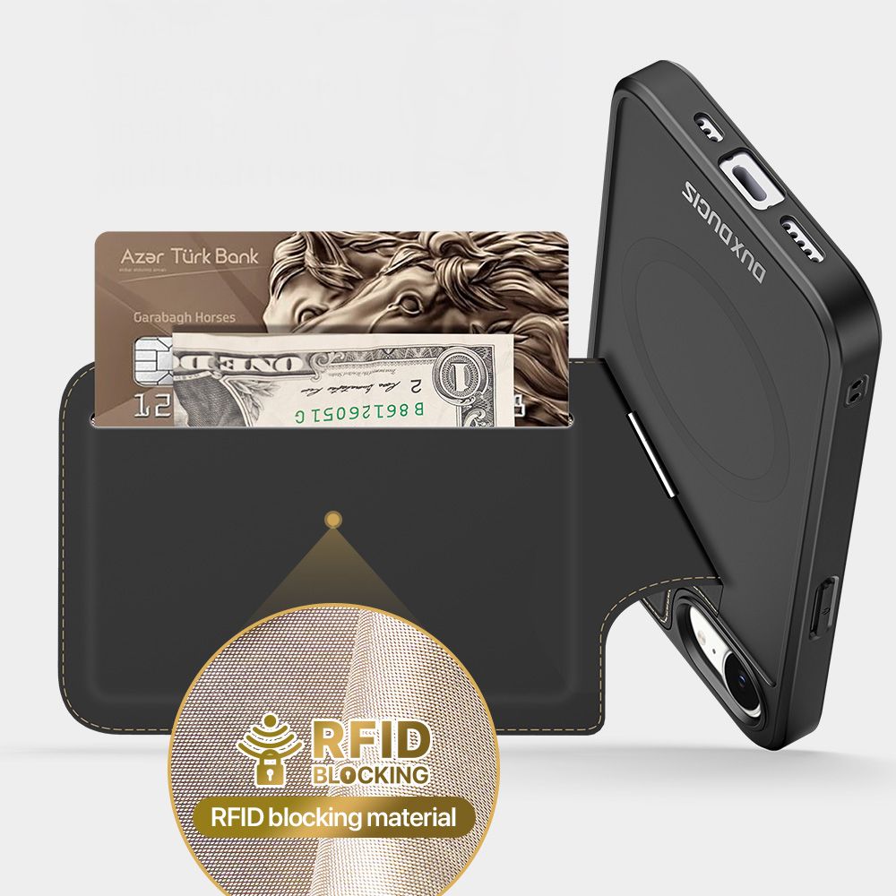 A Dux Ducis Rafi II Mag tok egy fejlett megoldás okostelefonokhoz, kompatibilis a MagSafe-fel. Két kártyazsebbel, egy RAFID zárral és egy állítható állvánnyal rendelkezik. A tok két zsebbel rendelkezik kártyák vagy készpénz számára, ebből az egyik lopás elleni funkcióval növeli a praktikusságot. Az állványban található RFID-blokk megakadályozza az érintés nélküli fizetéseket. Az állítható állvány 135°-ig lehetővé teszi a telefon kényelmes használatát függőlegesen és vízszintesen. A tok csak a lapos MagSafe töltőkkel kompatibilis, amelyek a hátsó borítás alatt elférnek, nem működik MagSafe tartókkal. Kemény PC lemezből és puha TPU szélekből készült, a tok megkönnyíti a telefon elhelyezését és véd a leesésektől. A hátlap sima PU bőrből készült, biztosítva az eleganciát és a kényelmes tartást.