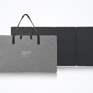 Az EcoFlow 400 W-os fotovoltaikus panel ideális az erőművek áramforrásának kiegészítésére. A 400 W teljesítményű panel összecsukható és hordozható kialakításával bárhová magával viheti, akár lakókocsis utazásra, akár sátrazásra. A készlet tartalmaz egy állványként is használható hordtáskát, valamint egy MC4 - XC60 (2,5 m) kábelt. A napelem szilárd és tartós, kifejezett energiahatékonysággal rendelkezik, amely 22,4%. Az eszköz könnyű, mindössze 12.5 kg, és vállpántjának köszönhetően kényelmesen hordozható. A táska állványként is szolgálhat, 40° és 90° közötti szögben állítható, így optimális napfényt biztosít. A napelem üvegszálból és hajlítható EVA anyagból készült, minden cella EFTE réteggel bevont, védve a víztől és portól, így bármilyen időjárási körülmények között használható. A 22,4%-os konverziós hatásfok és az MPPT algoritmus kihasználásával az EcoFlow generátor hatékony energiafelvételt biztosít. MC4 csatlakozójának köszönhetően többféle eszközzel kompatibilis, beleértve a DELTA sorozatú EcoFlow erőműveket.