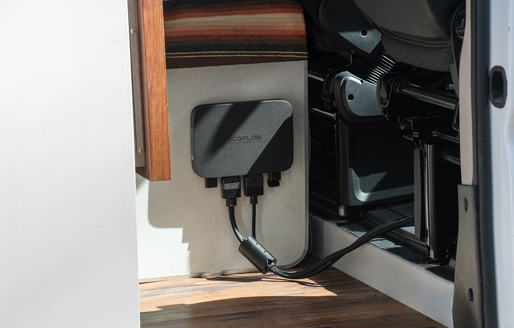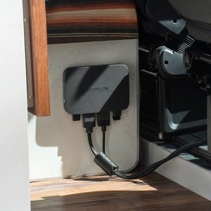 A terméket egyszerű telepítésre tervezték - a teljes telepítés három lépésben történik. A kompakt ház lehetővé teszi a készülék diszkrét elhelyezését a jármű belsejében. A vezetékek az akkumulátorhoz és a karosszéria földelésként funkcionáló fémrészéhez csatlakoznak. Vegye azonban figyelembe, hogy az XT60 kábel (az EcoFlow állomások szabványos csatlakozója) használata esetén manuálisan be kell kapcsolni a készüléket, és aktiválni kell a töltést az alkalmazásban - ezért célszerű elkerülni a nehezen hozzáférhető helyekre történő beszerelést.