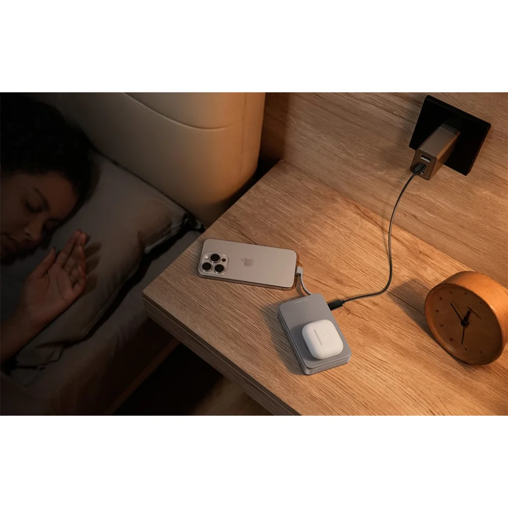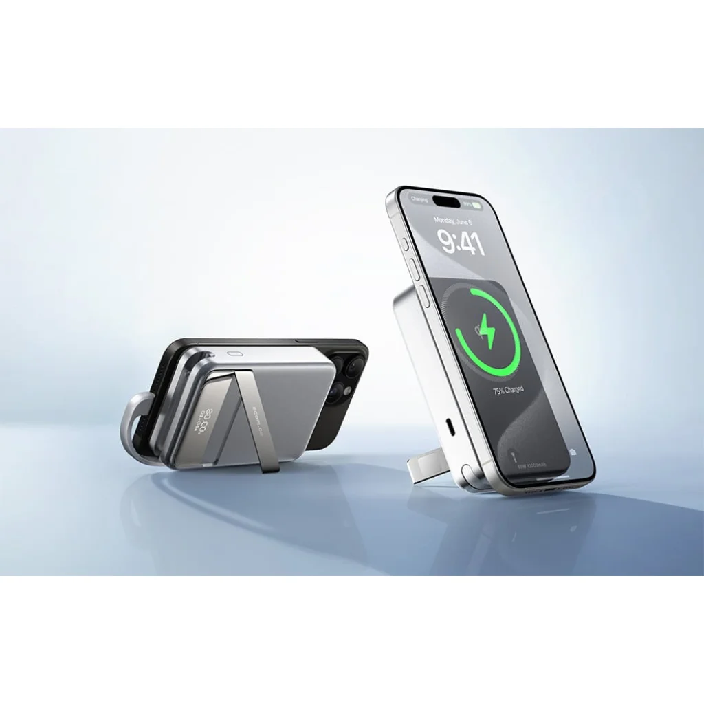 Az EcoFlow termék támogatja a vezeték nélküli töltést is 15 W-os teljesítménnyel, ami lehetővé teszi a kábel nélküli gyors töltést. A Qi1.0 (5W) és Qi2.0 (15W) szabványokkal való kompatibilitás révén a powerbank a 13-as modelltől kezdve az Android készülékek és iPhone-ok vezeték nélküli energia-megújítására van szabva. Egy iPhone 15 50%-ra történő feltöltéséhez 44 perc elegendő.
