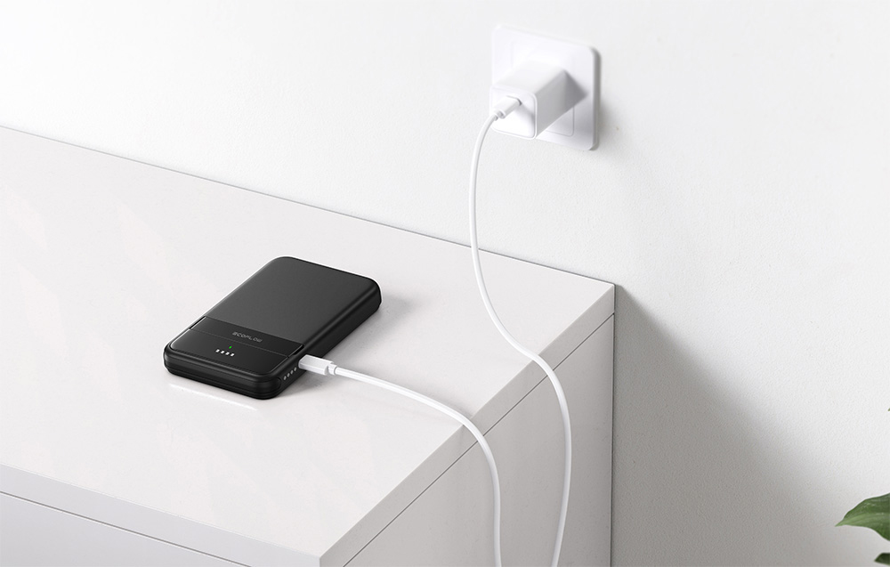 EcoFlow RAPID mágneses powerbank, 5000mAh (fekete). Az EcoFlow RAPID mágneses powerbank 5000mAh kapacitással rendelkezik. Segítségével vezetékes (30W) és vezeték nélküli (15W) töltést is végezhetsz a készülékeiddel. Rendelkezésedre áll egy USB-C port és egy integrált USB-C kábel. A készülék támogatja a népszerű töltési protokollokat, mint például a PD, QC és PPS, így gyorsan és biztonságosan újíthatod meg az energiát.
