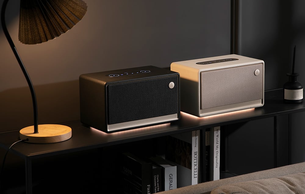 A retro stílusú, fából készült ház 15 mm vastag MDF lemezből készült. Ez nemcsak a rezonanciákat csökkenti, hanem időtlen stílust is kölcsönöz a hangszórónak. A hangszóró szövetborítása és minimalista részletei kiemelik a hangszóró elegáns jellegét. Emellett a három üzemmóddal rendelkező lágy Ambient Light háttérvilágítás lehetővé teszi, hogy bármilyen helyzethez - a pihenéstől a barátokkal való bulizásig - igazítsa a hangulatot.