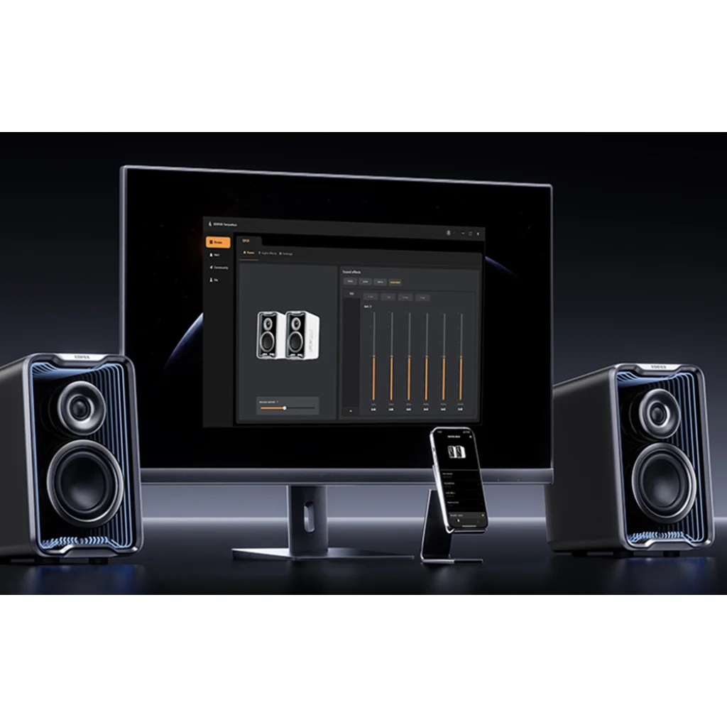 Az alkalmazás, amely többet ad: Nem kell az íróasztalához szaladgálnia, hogy beállítsa a hangzást - az Edifier ConneX és a TempoHub segítségével közvetlenül a telefonjáról vagy a számítógépéről vezérelheti a hangszórókat. Változtathatja a fényhatásokat, beállíthatja az ekvalizátort a kedvére, átkapcsolhatja a hangmódokat (zene, film, játékmódok) és vezérelheti a lejátszást - mindezt egy helyen. Az egyszerű kezelőfelületnek köszönhetően szó szerint egy pillanat alatt elvégezheti a beállításokat, így Ön az igazán fontos dolgokra koncentrálhat.