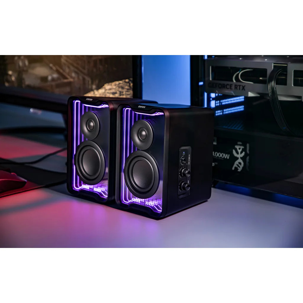 Az íróasztala a munka, a pihenés és a szórakozás helye - gondoskodjon arról, hogy a hangzás megfeleljen az elvárásainak. Az Edifier QR30 kompakt hangszórók Class-D erősítővel, amelyek a lenyűgöző hangzást, a magával ragadó fényhatásokat és az intuitív kezelést ötvözik. Többféleképpen csatlakoztathatók berendezéseihez, és támogatják az Edifier ConneX alkalmazást, amely Equalizer beállításokat is tartalmaz. Ideálisak zenéhez, filmekhez és játékokhoz, tiszta, dinamikus hangzással töltik meg a teret, és a hangulatnak megfelelő atmoszférát teremtenek. Akár egy fontos projektet fejez be, akár kedvenc játékában merül el, a QR30-asok gondoskodnak a legjobb hangzásról.