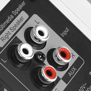 Kettős RCA bemenet Az R1280T számos audioeszközhöz csatlakoztatható a kettős RCA bemeneten keresztül. A hátlapra pillantva könnyen felismerhető, hogy melyik a passzív hangszóró, a másik pedig az aktív hangszóró. Az aktív hangszórónak két bemenete van a hátlapon. Ezek a bemenetek ideálisak RCA-RCA vagy RCA-AUX csatlakozásokhoz. Csatlakoztassa őket számítógépéhez, laptopjához, táblagépéhez, telefonjához vagy lemezjátszójához. A hangszórók egy közönséges hangszórókábellel csatlakoztathatók egymáshoz.