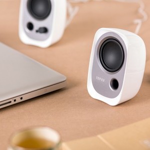 Edifier R12U hangszórók (fehér) Olyan hangszórót szeretne, ami egyszerre kompakt kialakítással és csúcsminőségű hangzással rendelkezik? Az Edifier R12U pontosan Önnek lett tervezve! 60 mm-es hangszóróval és Bass Reflex porttal rendelkezik, ami kristálytiszta hangzást biztosít. Emellett más hangforrást is csatlakoztathat a 3.5 mm-es port segítségével.