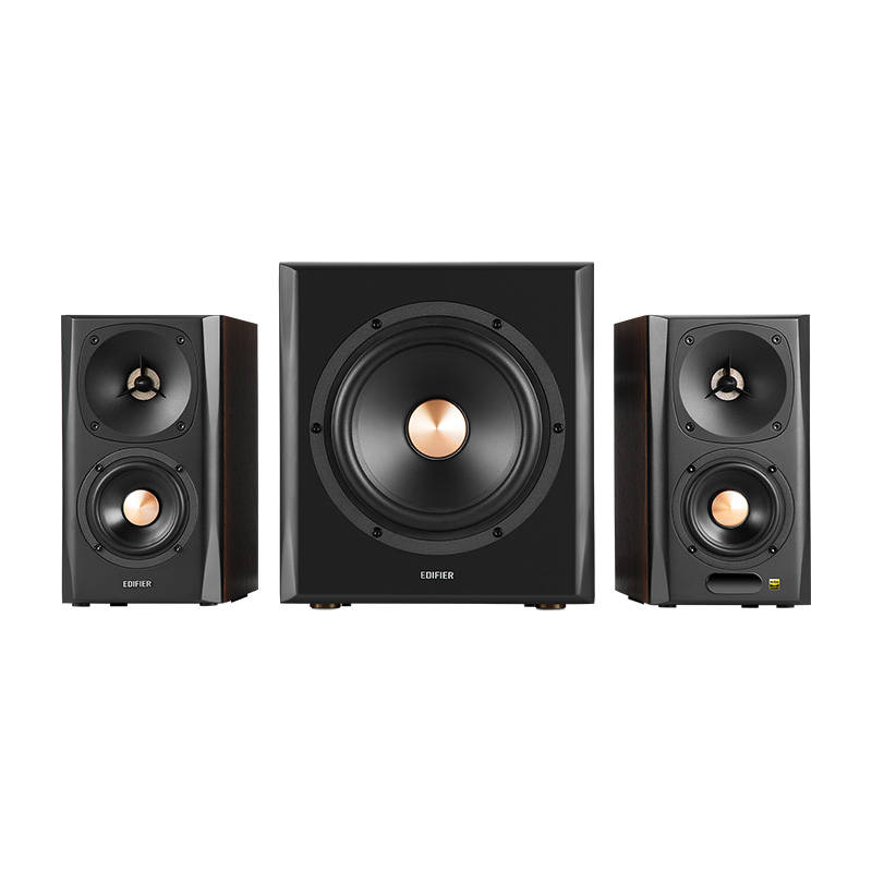 A zene szerelmeseinek tervezve Az Edifier S350DB hangszóró készlet kiváló választás bárkinek, aki nagyszerű hangzást szeretne az otthonában, de nincs olyan sok férőhelye! A hangszóró egy tökéletes kombinációja a 2.1-es hangszóró rendszernek, ami kellemes és részletes hangzást biztosít zenehallgatás közben, valamint 150 W-os teljesítményt filmezés vagy játékok közben.