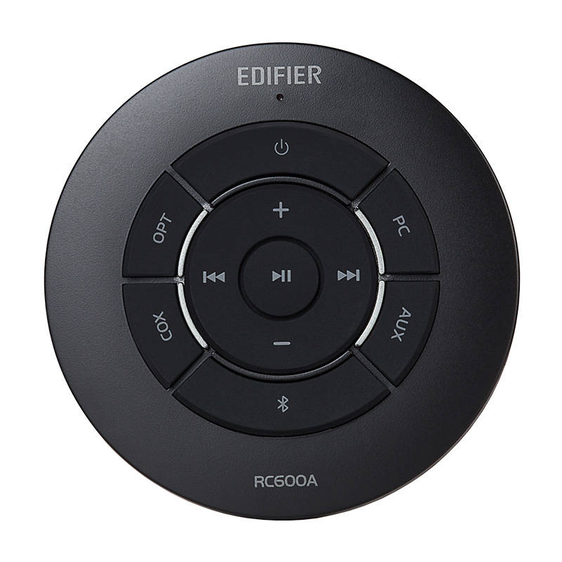 Váltson a bemenetek között és vezérelje a lejátszást a vezeték nélküli távirányító segítségével. A kanapén ülve válthat az optikai, coaxial, AUX és Bluetooth bemenetek között, valamint állíthat a hangerőn és be- vagy kikapcsolhatja a készüléket.
