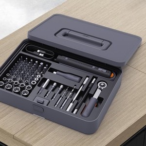 A Jimi Home készlet egyik eleme az elektromos precíziós csavarhúzó. Két kapcsolóval van ellátva, így több alkalmazáshoz is használható. Két irányban tud forogni - az óramutató járásával ellentétesen és az óramutató járásával megegyezően. Ez megkönnyíti a csavarok becsavarását vagy kicsavarását. Ezenkívül speciális zár módja van, amely megakadályozza az eszköz elindulását, így ha befejezted a használatát, biztos lehetsz benne, hogy biztonságosan tárolható lesz.