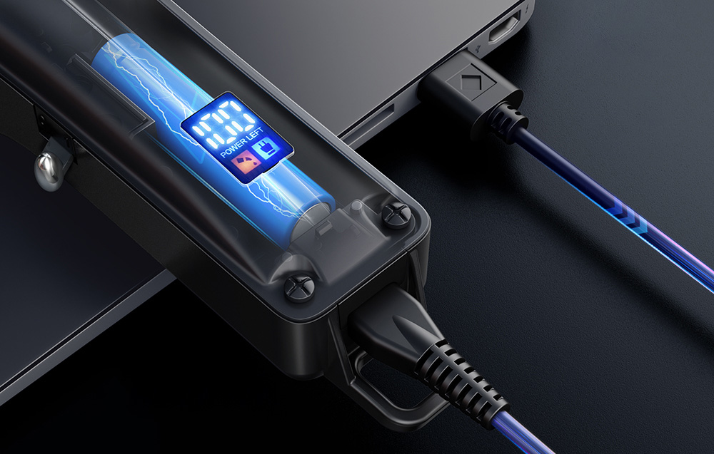 A borotva praktikus LED kijelzővel rendelkezik, amely fontos információkat, köztük az aktuális akkumulátor állapotot is megjeleníti. Ez lehetővé teszi, hogy stratégiailag töltsük fel az eszközt, így mindig készen áll, amikor szükség van rá. A LED kijelző a megmaradt energia százalékát mutatja. Ha az akkumulátor szintje 5% alá csökken, piros ikon jelenik meg a százalékos érték mellett. Emellett a borotva jelez, amikor olajat kell hozzáadni, ekkor a piros ikon ismét megjelenik, és az eszköz egy hangos figyelmeztető jellel is jelzi ezt.