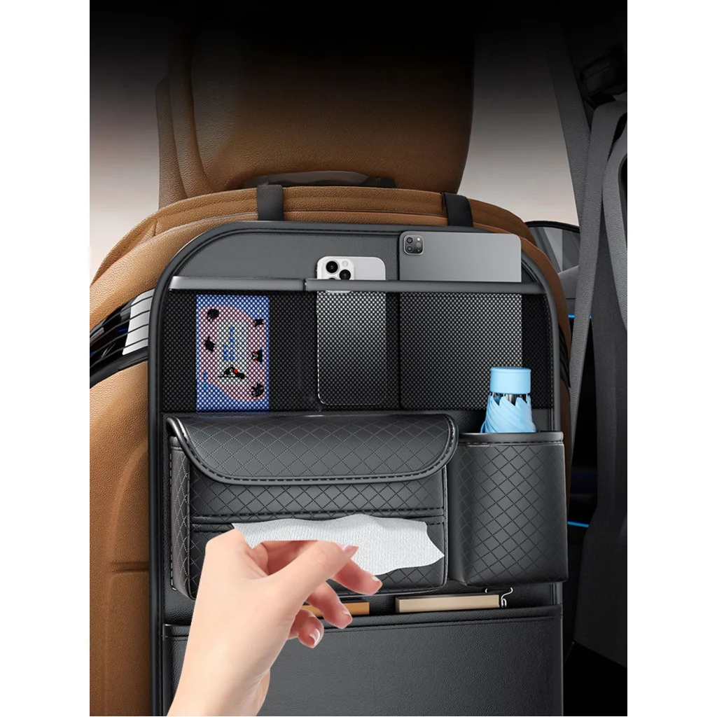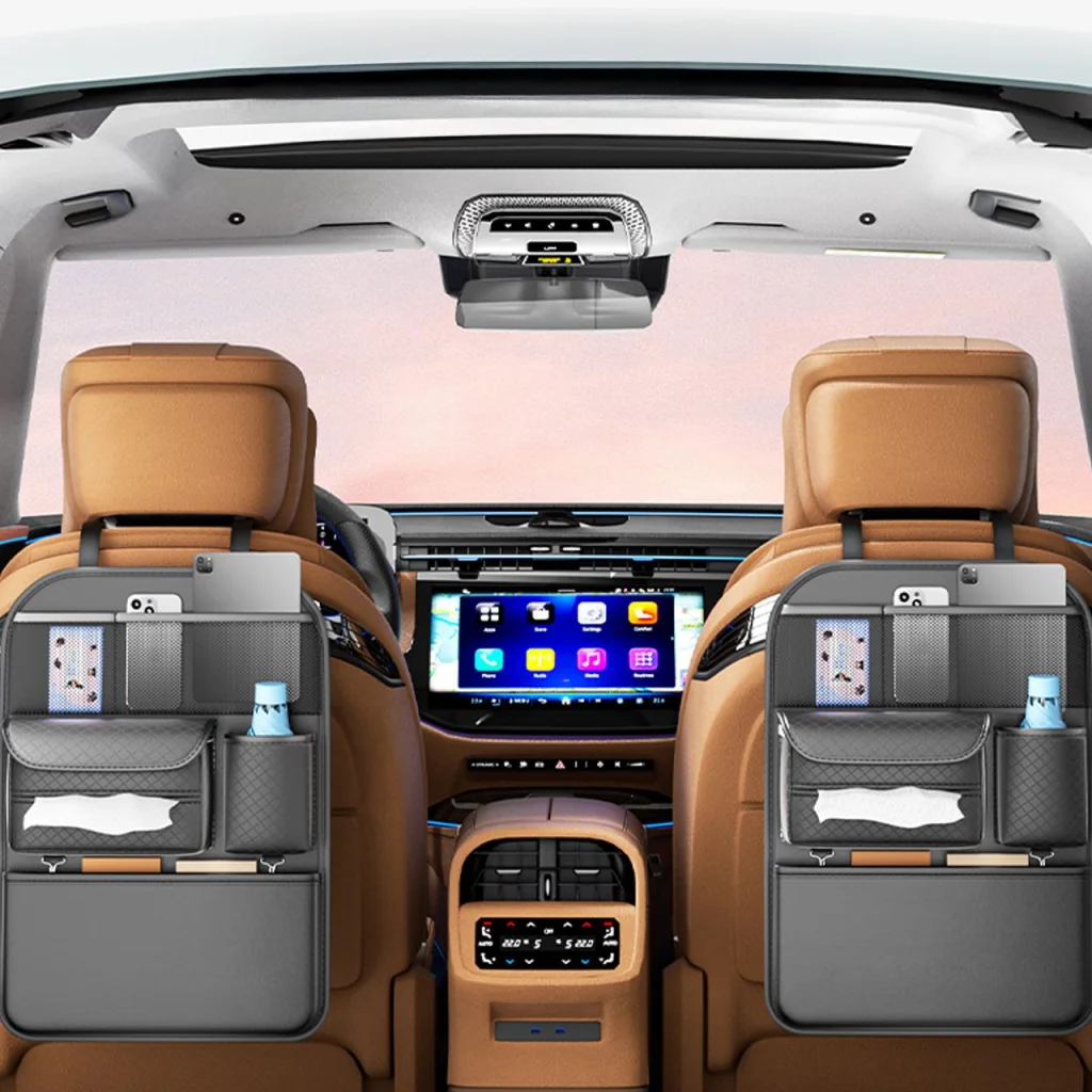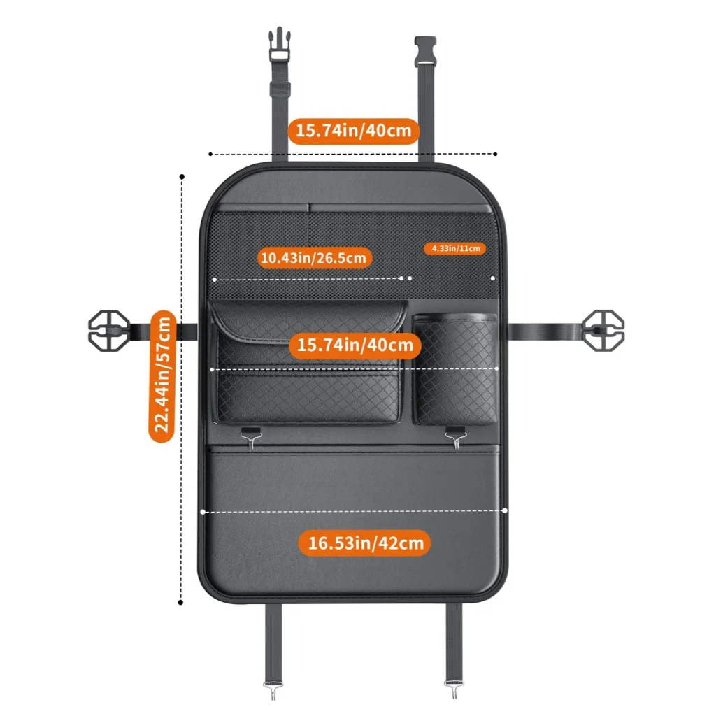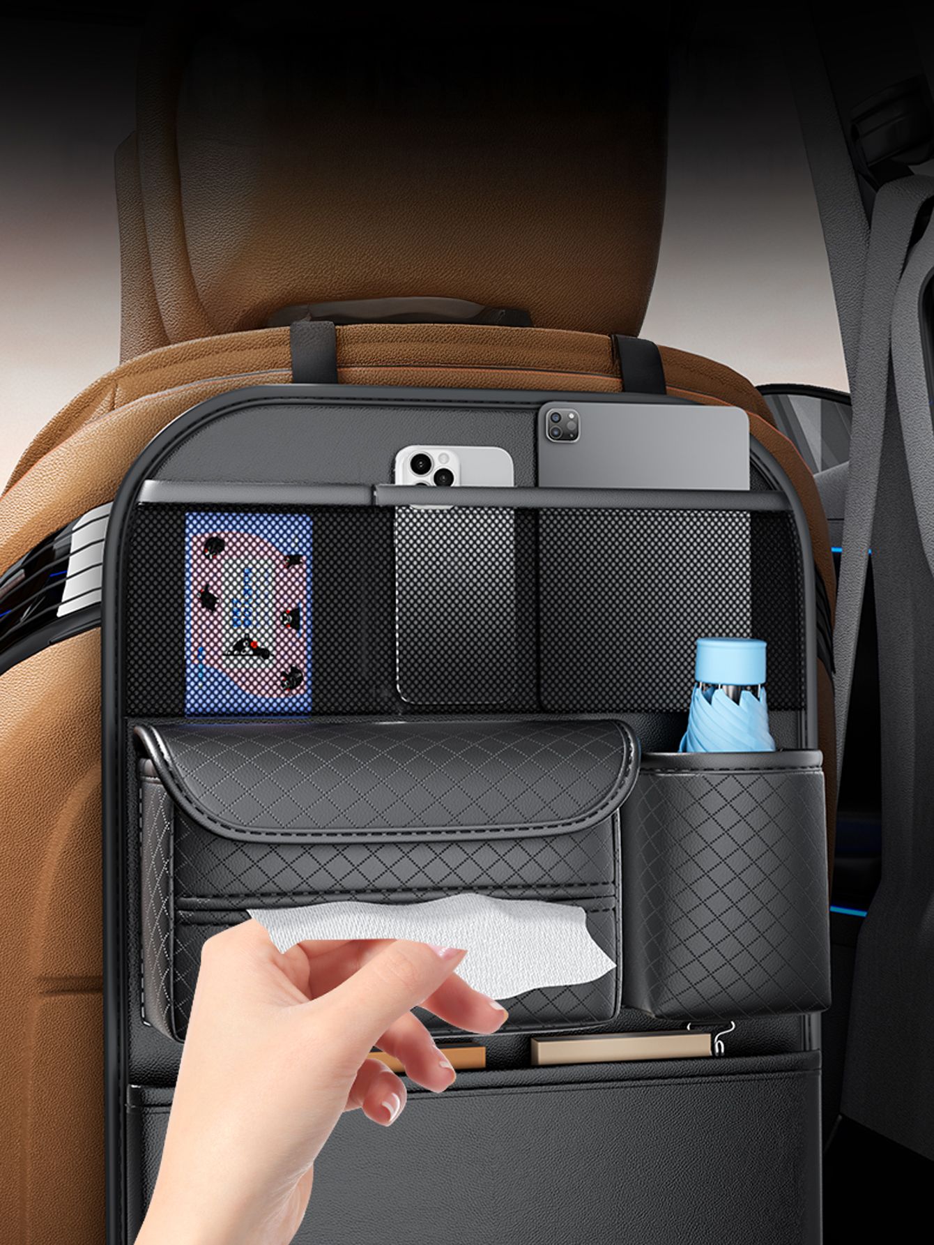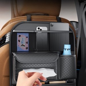 Ez a praktikus autós szervező elengedhetetlen kiegészítője az autódnak. Tartós és rugalmas PVC anyagból készült, gyémántmintás textúrával, segít rendszerezni a helyet az autódban és optimálisan elrendezni az összes szükséges apróságot. Kompakt méreteinek (42,5 cm x 20 cm x 4 cm) köszönhetően könnyen rögzíthető az első ülésekhez, gyors hozzáférést biztosítva a tárolt tárgyakhoz. • Funkcionalitás: Rekeszeivel lehetővé teszi különféle apró tárgyak tárolását, mint például palackok, autós kiegészítők vagy papír zsebkendők, így rendben tartva az autódat. • Tartós anyag: Magas minőségű PVC anyagból készült, kopásálló és könnyen tisztán tartható. • Modern dizájn: Klasszikus fekete szín és egyszerű, de funkcionális kialakítás tökéletesen illeszkedik bármilyen jármű belső teréhez. • Egyszerű összeszerelés: Az organizátor gyorsan és könnyen rögzíthető az első ülésekhez, így kényelmes megoldást nyújt a mindennapi használatra. Specifikáció: