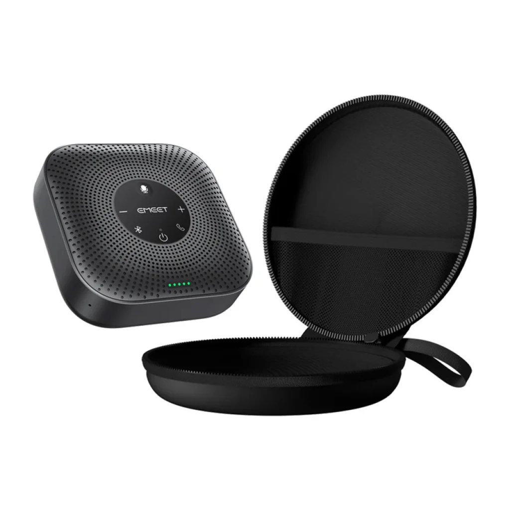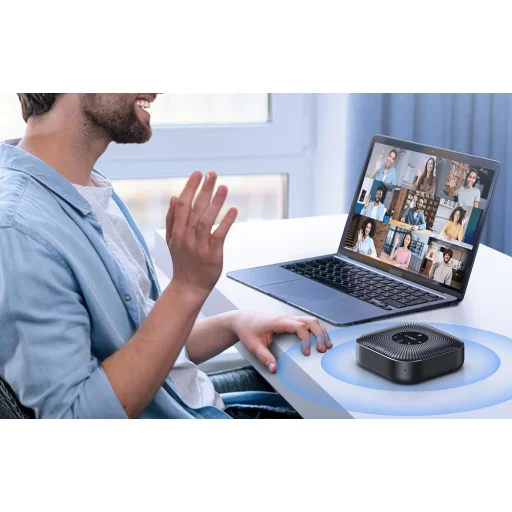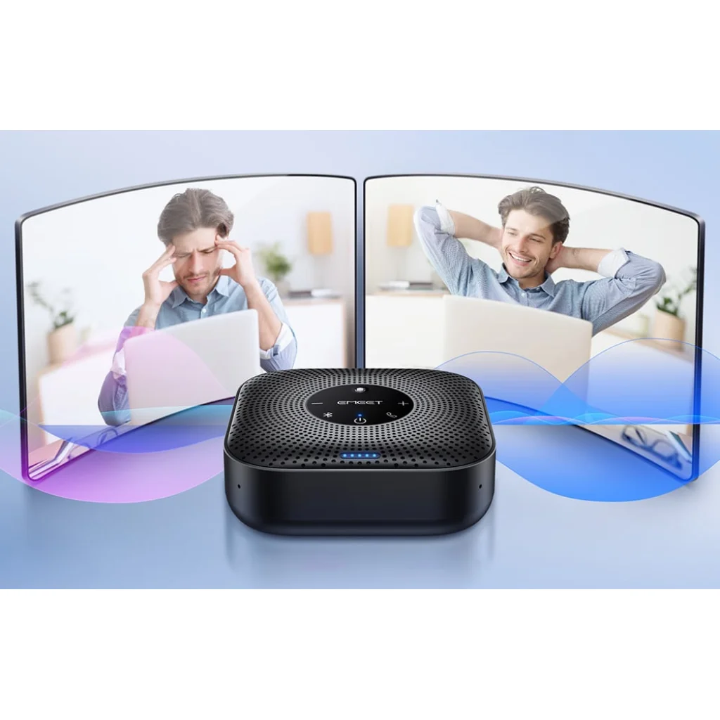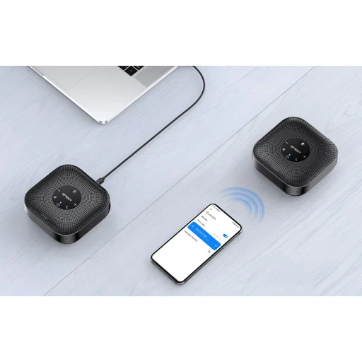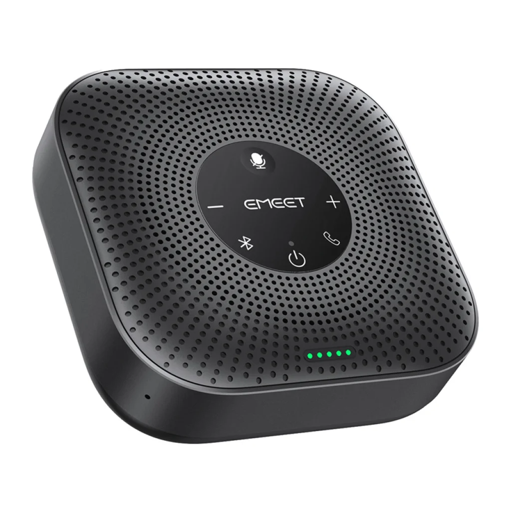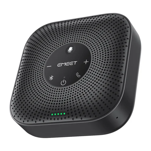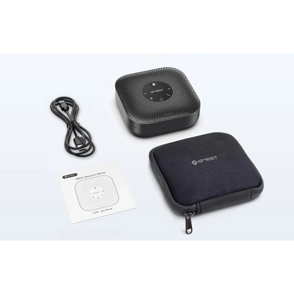 Az EMEET OfficeCore M0 Plus konferencia-kihangosító fejlett AI VoiceIA® 4.2 algoritmussal, full duplex támogatással, 4 mikrofonos 360°-os hangfelvétellel, valamint USB-C és Bluetooth 5.0 csatlakozással biztosít kiváló hangminőséget online megbeszélésekhez. Hatékonyan csökkenti a környezeti zajokat és a visszhangot, így természetes, zavarásmentes beszélgetést tesz lehetővé. A 4 mindenirányú mikrofonnak és a 3 W teljesítménynek köszönhetően egyenletes hangzást nyújt a teljes helyiségben.