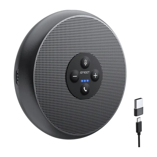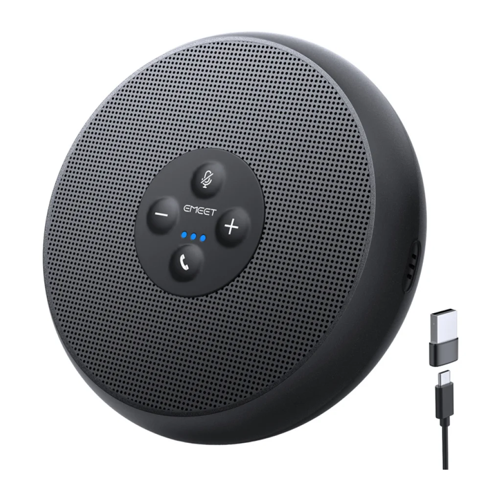 Az EMEET OfficeCore M1A egy hordozható konferencia-kihangosító, amely két 360°-os, minden irányból érzékelő mikrofonnal, 16 kHz-es HD Voice hangminőséggel, 3 W teljesítménnyel és 80 dB hangnyomásszinttel rendelkezik, így akár 8 fős csoportok számára is tiszta kommunikációt biztosít. A készülék körülbelül 3 méteres sugárban veszi a hangot, a Full Duplex technológiának köszönhetően pedig zavartalan beszélgetést és hallgatást tesz lehetővé. Kompakt méreteinek (112 × 112 × 36 mm) és kis tömegének (196 g) köszönhetően könnyedén magával viheti bárhová – az irodától az utazás közbeni megbeszélésekig. Az EMEETLINK szoftver segítségével a beállítások frissíthetők és személyre szabhatók.