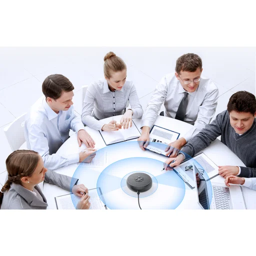 A két mindenirányú mikrofon minden irányból rögzíti a hangokat, így a résztvevők szabadon beszélhetnek anélkül, hogy közvetlenül a készülék mellett kellene ülniük. A körülbelül 3 méteres hatótáv ideálissá teszi kis tárgyalókhoz és csapatmegbeszélésekhez. Ez a megoldás megőrzi a beszélgetés természetes dinamikáját, és szükségtelenné teszi a fejhallgató használatát.