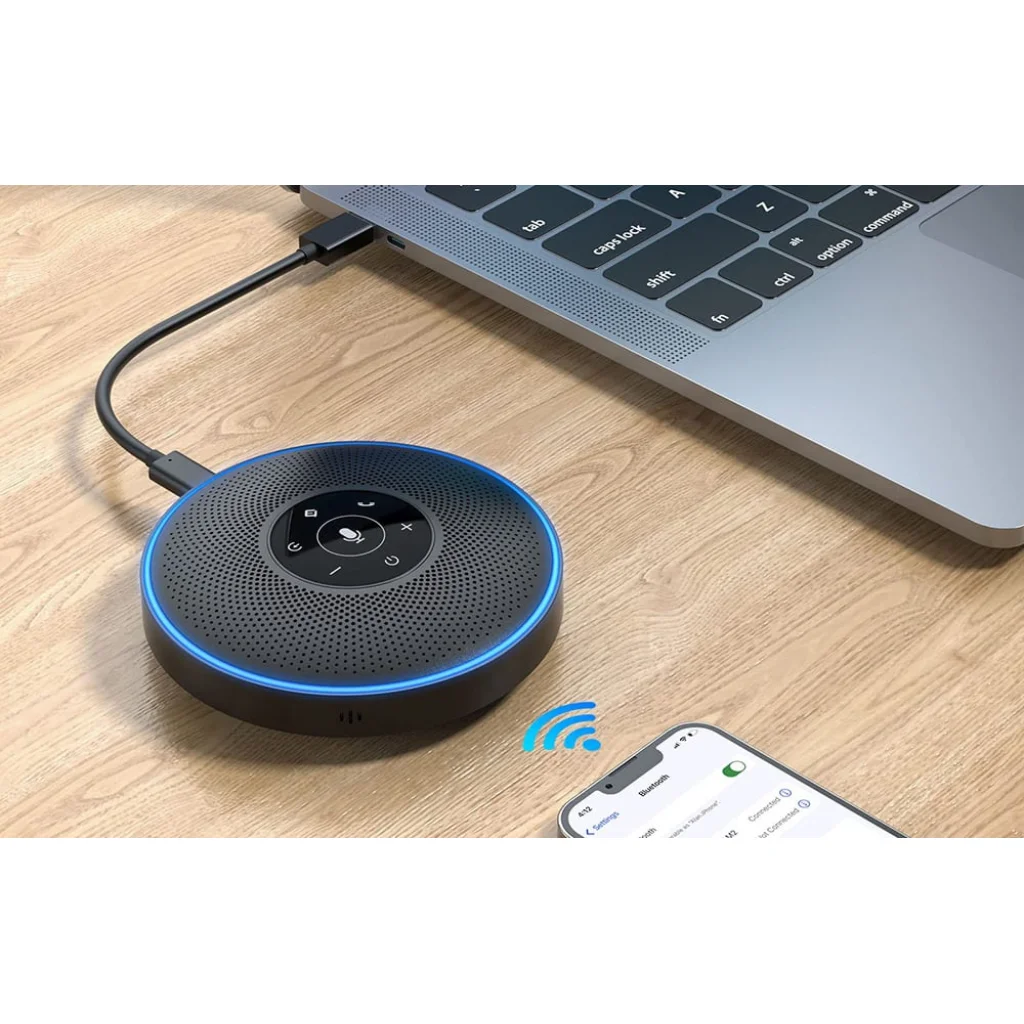 Az EMEET OfficeCore M220 többféle csatlakozási lehetőséget kínál, így könnyen alkalmazkodik a különféle eszközökhöz és munkakörnyezetekhez. Az USB-C, az USB A200 adapter, a Bluetooth, valamint a 3,5 mm-es kábel (AUX bemenet és AUX kimenet) rugalmas konfigurációt tesz lehetővé. A Daisy Chain funkció két hangszóró összekapcsolását is lehetővé teszi, amellyel növelhető a lefedettségi terület, és akár 16 fős értekezletek is lebonyolíthatók hangminőség-romlás nélkül.