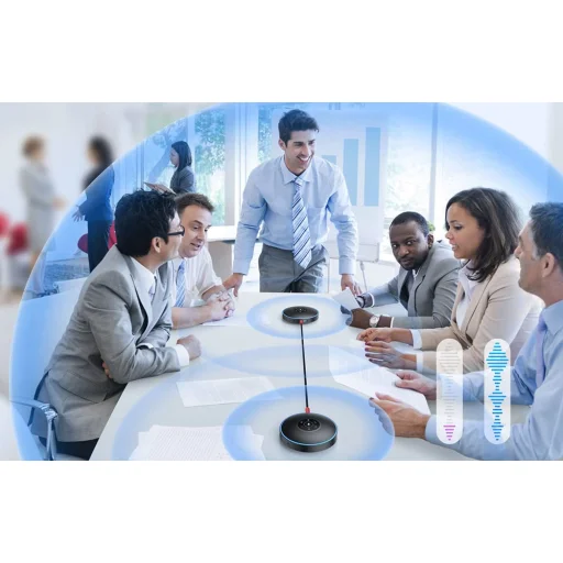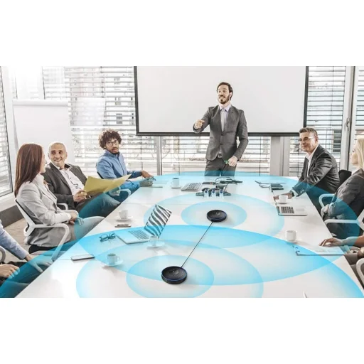 A négy beépített, minden irányba érzékeny mikrofon minden irányból rögzíti a hangokat, így a résztvevők szabadon beszélhetnek. Az akár 3 méteres hatótávolság ideális tipikus tárgyalókba és kisebb megbeszélésekhez. Az intelligens hanghelymeghatározó rendszer egy fénygyűrű segítségével jelzi az éppen beszélő személyt, így könnyebb követni a beszélgetést, különösen nagyobb létszám vagy élénkebb vita esetén.