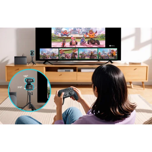 Az EMEET Pixy kompatibilis Windows és macOS rendszerekkel, valamint olyan népszerű platformokkal, mint a Zoom, Microsoft Teams, Google Meet, OBS, YouTube és Twitch. Nintendo Switch 2 konzollal is használható. A kamera bonyolult beállítás nélkül működik, és a magánélet védelme érdekében a lefelé fordított pozíció automatikusan aktiválja a takarást.