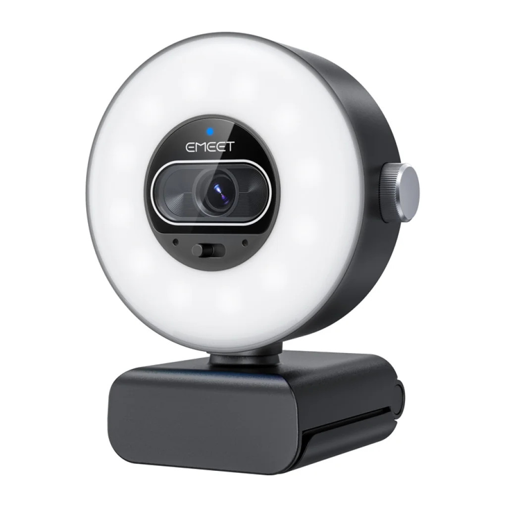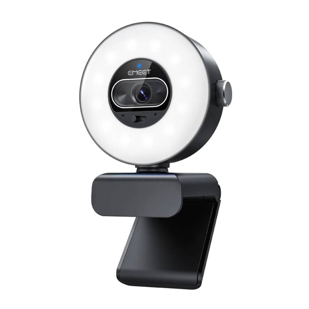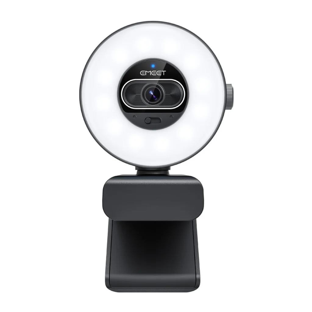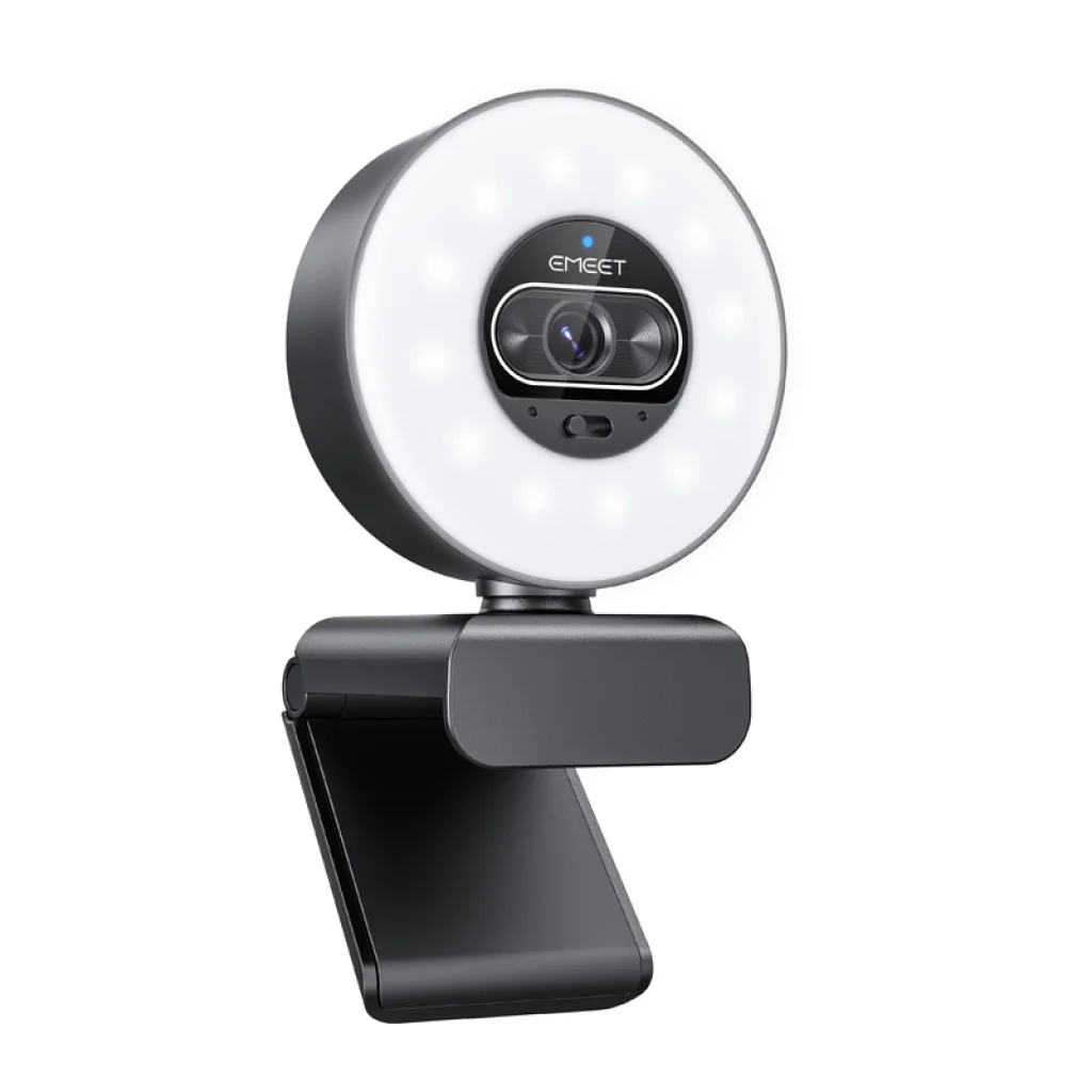 Az EMEET SmartCam S600L webkamera UHD 4K felbontással, gyors, 0,2 másodperces autofókusszal és beépített, fényerő-szabályozható gyűrűs lámpával rendelkezik. Nagyméretű, 1/2 hüvelykes érzékelőjének és az 1080p felbontás 60 képkocka/másodperces támogatásának köszönhetően sima és tiszta videót biztosít online értekezletekhez és tartalomkészítéshez.