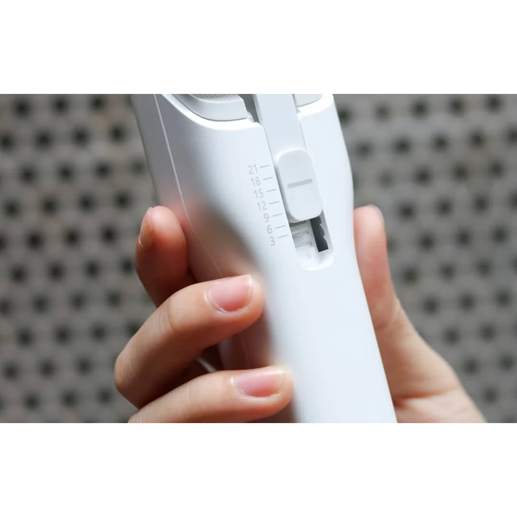 Felejtsd el a sokféle fésűs kiegészítő szükségességét a borotvádhoz. Az ENCHEN márkájú készülék egy speciálisan kialakított csúszó sapkával rendelkezik, amely lehetővé teszi a penge hosszának 7 lépésben történő beállítását 3 / 6 / 9 / 12 / 15 / 18 / 21 mm tartományban. Ez ideális például gyermekek hajának nyírásához, pajesz formázásához vagy különféle frizurák kialakításához. Ezenkívül a sapka eltávolítása után a hajat akár 0,7 mm hosszúságúra is rövidítheted.