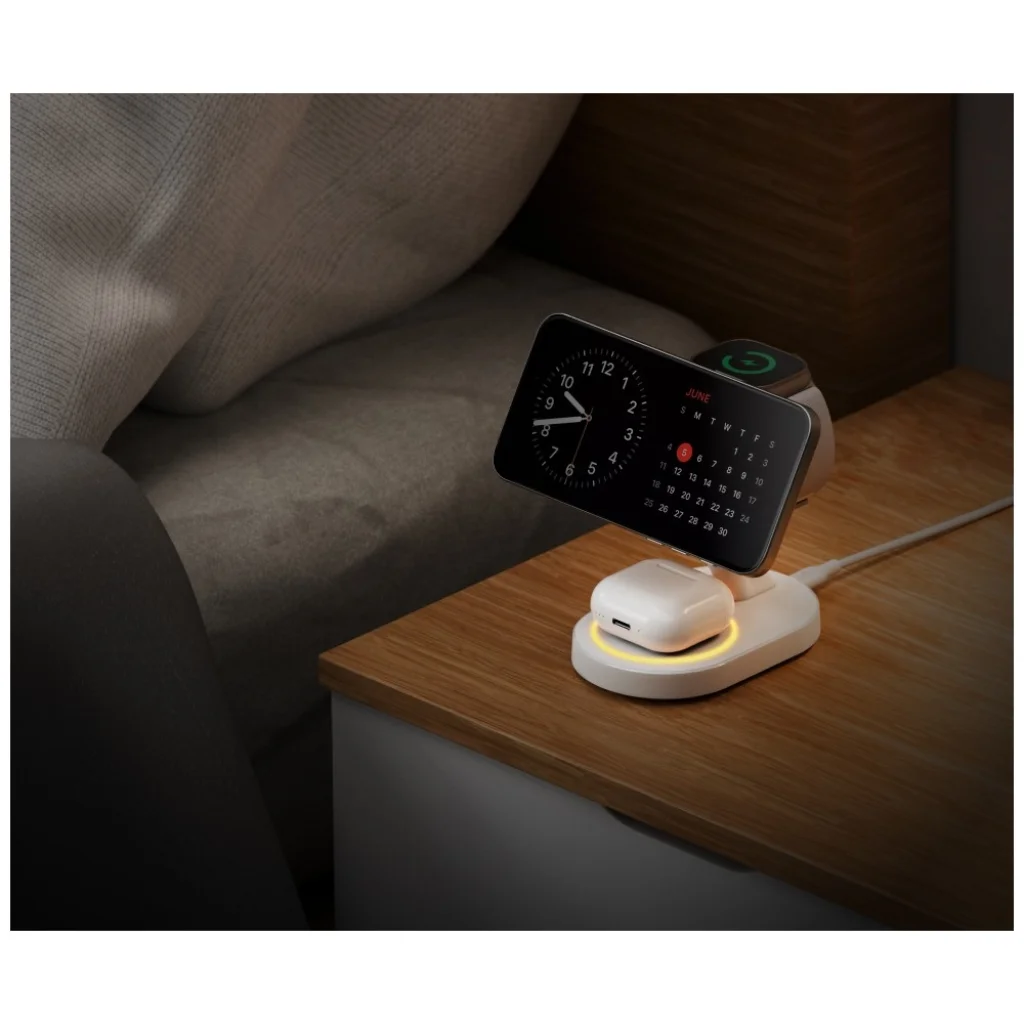 Kényelmes és gyors töltés MagSafe-kompatibilitással. Az Energea GoMag Station 2 vezeték nélküli töltő tökéletes megoldás azok számára, akik egyszerű és gyors módot keresnek telefonjuk feltöltéséhez. A MagSafe-kompatibilitásnak köszönhetően a telefon igazítása rendkívül egyszerű, és a töltés maximális sebességgel történik. Gyors vezeték nélküli töltés különböző módokban. Ez a mágneses tartó 5W, 7.5W, 10W és 15W töltési teljesítményt kínál, a készülék típusától függően. Ez gyors és hatékony töltést tesz lehetővé. Ezenkívül a készülék Qi2 tanúsítvánnyal rendelkezik, és beépített meleg fényű lámpával rendelkezik, amely segíti az éjszakai használatot. Kivételes mágneses erő és sokoldalú rögzítés. A GoMag Station 2 erős és biztonságos tartást biztosít telefonjának, akár tok nélkül, akár MagSafe tokkal, köszönhetően lenyűgöző mágneses erejének. A mágnes képes erősen és biztonságosan tartani a telefont. Különböző helyeken használható, az igényeinek megfelelően.