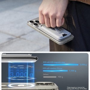 - Kiemelkedő mágneses tartás: Az ESR exkluzív HaloLock technológiája rendkívül erős mágneses rögzítést biztosít. Akár 3000g tapadási erővel ESR mágneses tokkal, vagy 1500g-mal tok nélküli iPhone-nal, ez a pénztárca biztonságosan a helyén marad még rázkódás közben is, messze felülmúlva a hasonló termékek 700g-os átlagát.