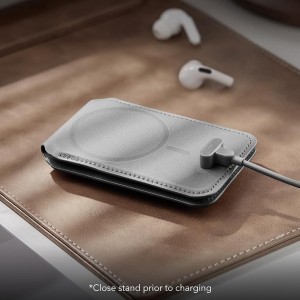 - Prémium műbőr és elegáns design: A kiváló minőségű, tartós műbőr anyag kellemes tapintású és elegáns megjelenést kölcsönöz a terméknek. A pontos varrás és a modern szürke szín (amely kiválóan illeszkedik például a "Természetes Titán" színű iPhone modellekhez) emeli a kiegészítő értékét. A termék az iF Design Award 2024 díj nyertese is.