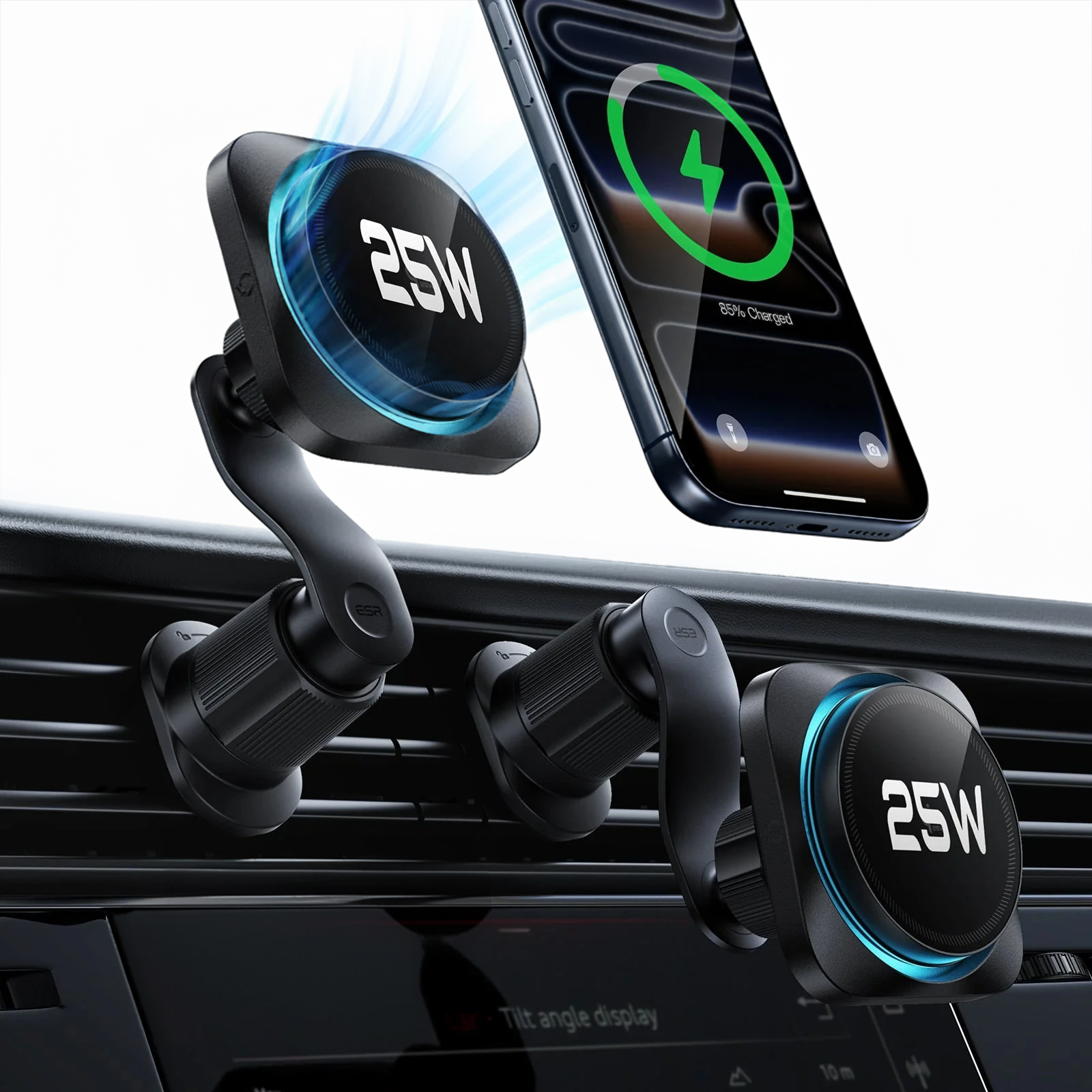 Fedezze fel az ESR OmniLock autós tartóját, amely tökéletes kombinációja a villámgyors Qi2 25W vezeték nélküli töltésnek, a kivételes stabilitásnak és a páratlan állíthatóságnak. A légkondicionáló rácsra szerelhető, elegáns fekete színű OmniLock tartó garantálja, hogy telefonja biztonságban legyen és optimális hőmérsékleten működjön, miközben Ön a leggyorsabb útvonalon halad célja felé.