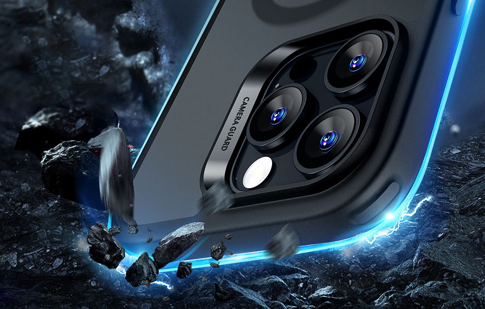 A kijelző és a kamera karcolások elleni védelme érdekében a tok emelt élekkel rendelkezik - 1,2 mm a kijelző és 0,7 mm az objektív számára. Így az iPhone 16 Pro Max védett marad akkor is, amikor a kijelzővel vagy kamerával lefelé helyezik le.