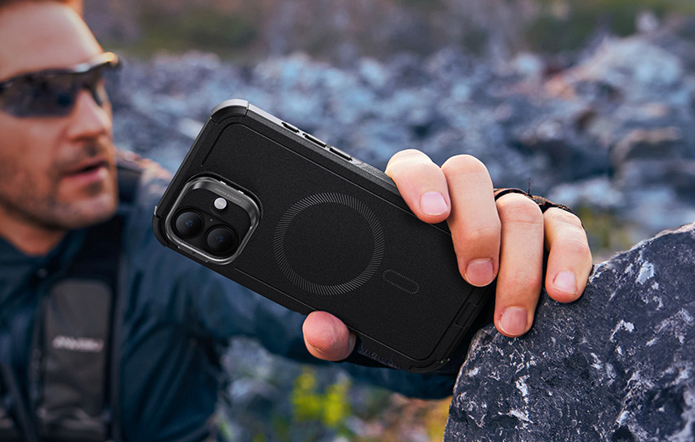 Az iPhone 16-hoz tervezett fekete ESR Cyber Tough (HaloLock) tok megbízható védelmet nyújt, megfelelve a MIL-STD-810H 516.8 katonai szabványnak. Az eszköz képes elviselni akár 7 méteres magasságból történő leesést is. A termék állvánnyal rendelkezik, és kompatibilis mágneses kiegészítőkkel.
