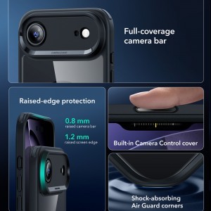- Vékony és elegáns design: A mindössze 1,5 mm vékony hátlap megőrzi az iPhone 17 Air karcsú profilját. Az átlátszó fekete kivitel kiemeli a telefon eredeti stílusát, anélkül, hogy vastaggá vagy ormótlanná tenné.